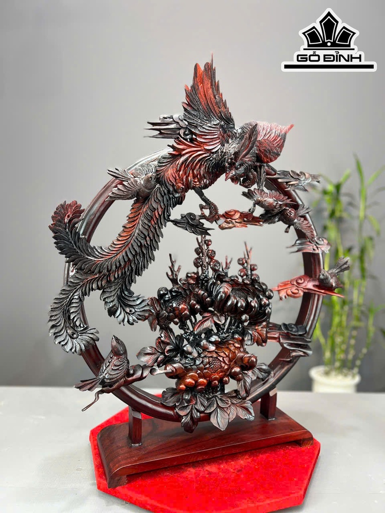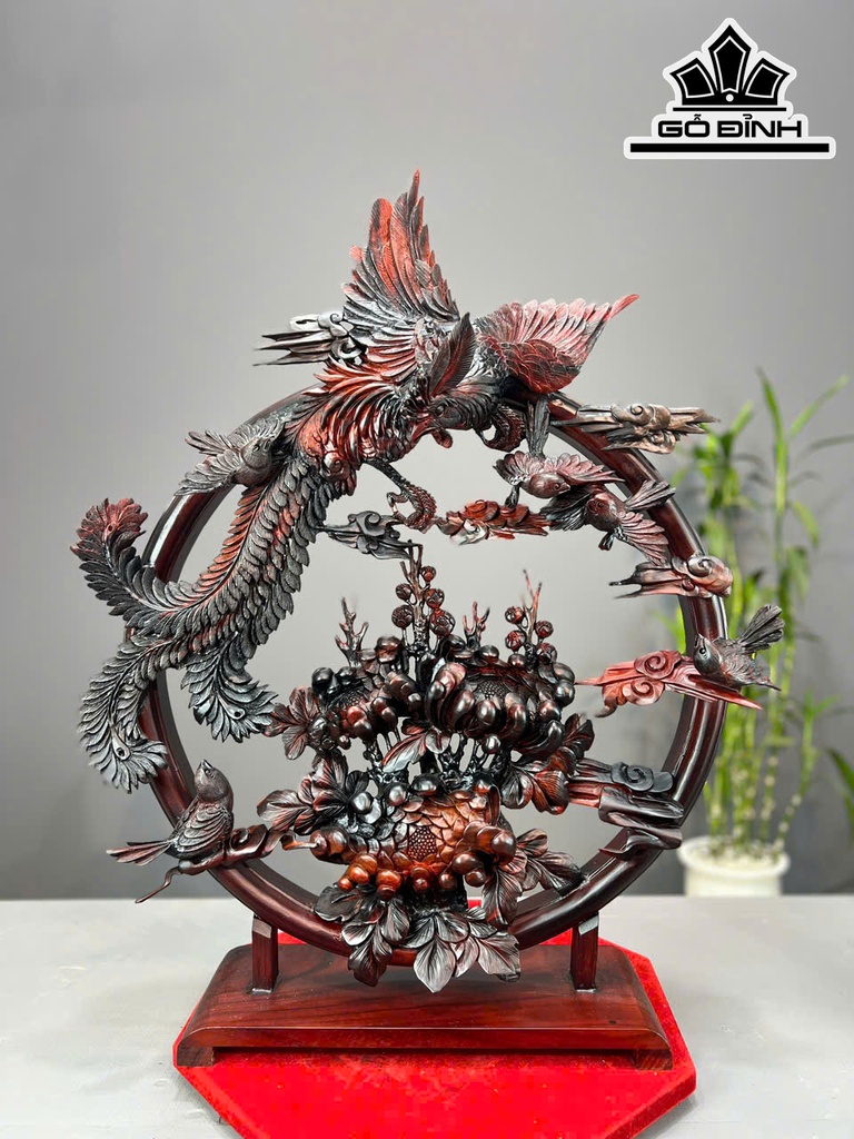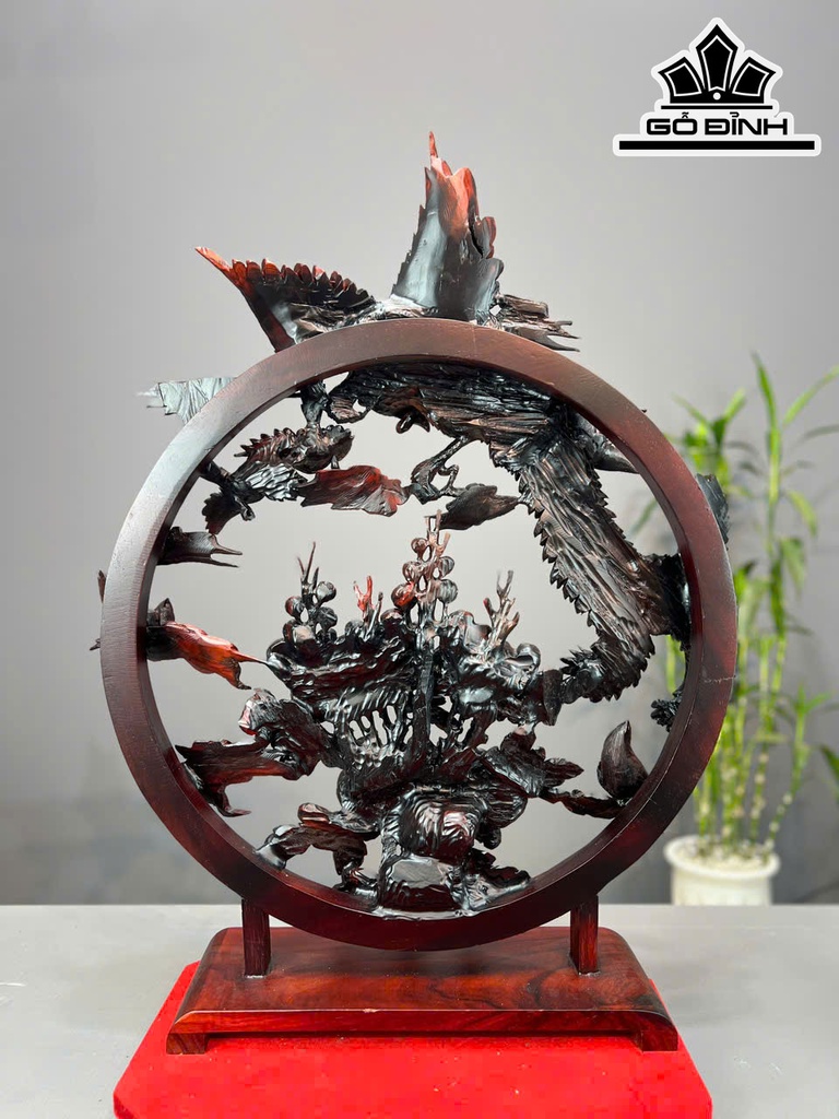 Ngũ Điểu Chầu Hoàng Gỗ Trắc Cao 78 Ngang 61 Sâu 15 (cm)