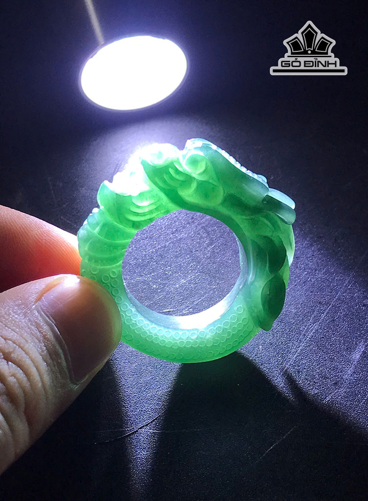 Nhẫn Uy Long Đá Ngọc Lam (Turquoise) Size Lòng 19,26 - Bản 8 - 10,8(cm)