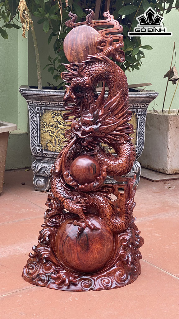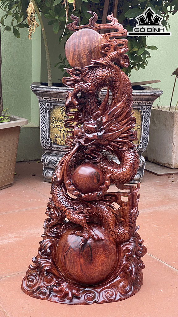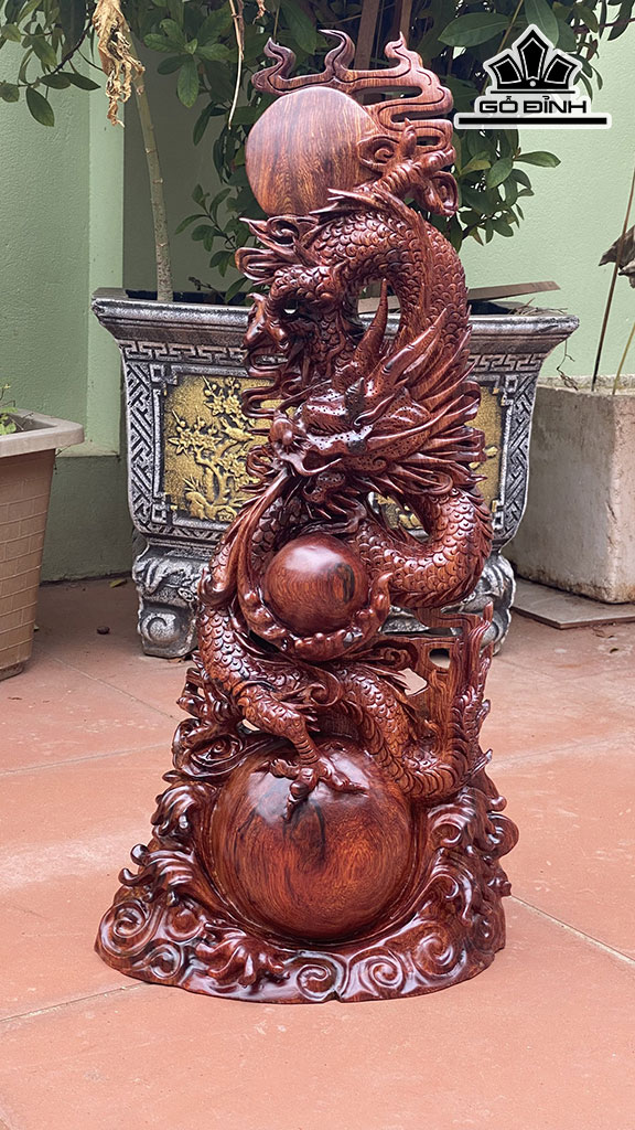 Nhất Long Vờn Ngọc Gỗ Cẩm Cao 68 Ngang 32 Sâu 16 (cm)