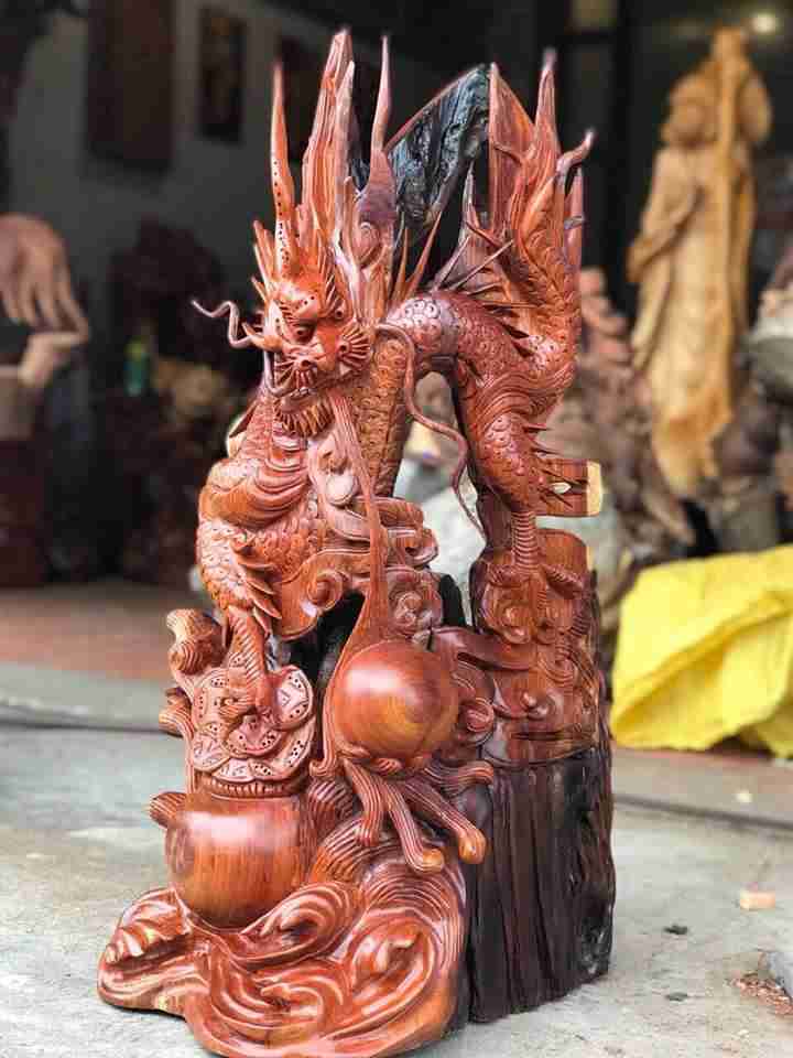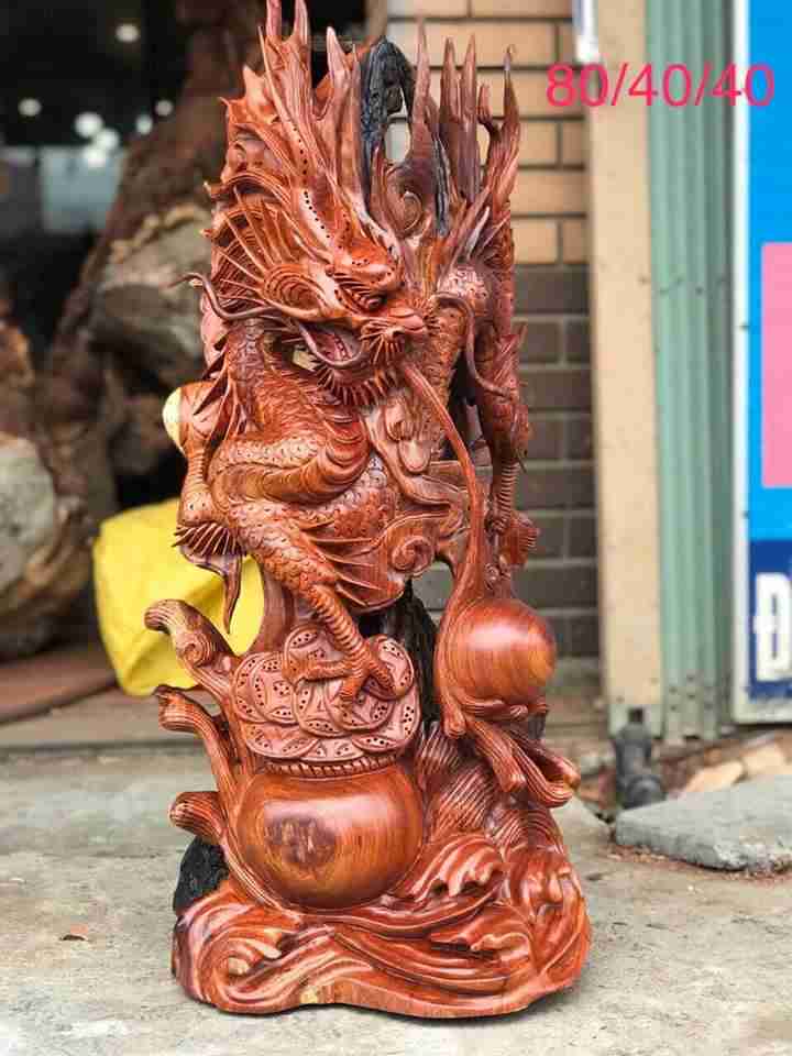 Nhất long vờn ngọc gỗ hương 80x40x40