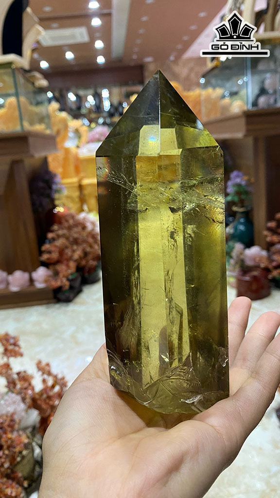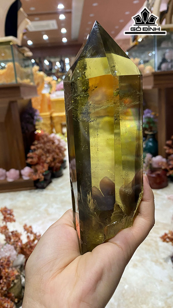 Nhất Trụ Đá Thạch Anh Vàng Khói Cao 17 Ngang 6 Sâu 6 (cm) 835g