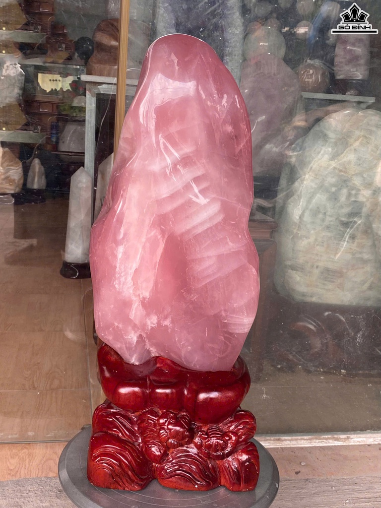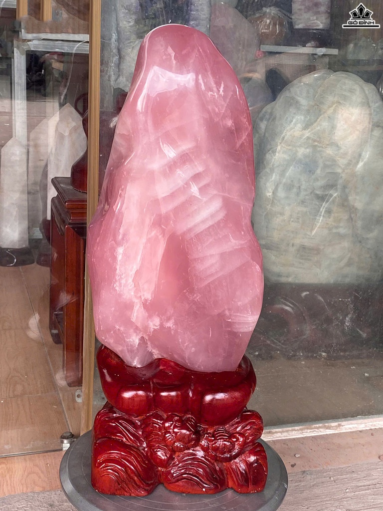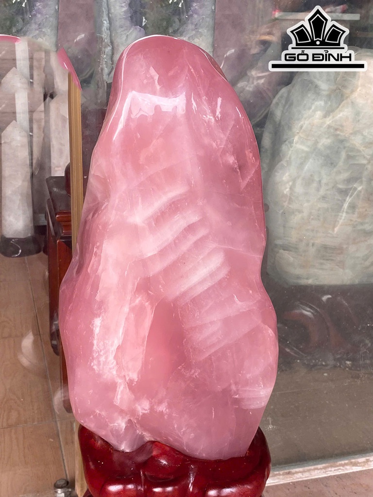 Núi Cảnh Đá Thạch Anh Hồng Cao 43 Ngang 22 Sâu 16 (cm) - 18,1kg- Cao Cả Đế 56 (cm)