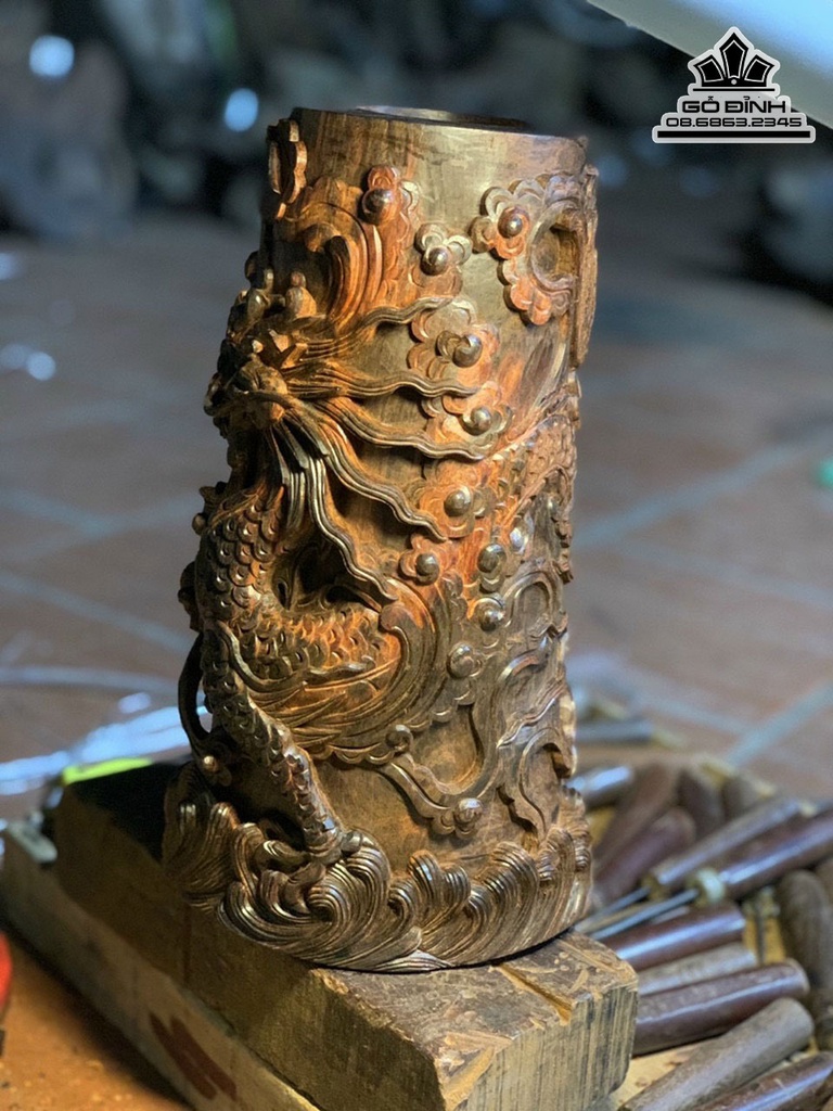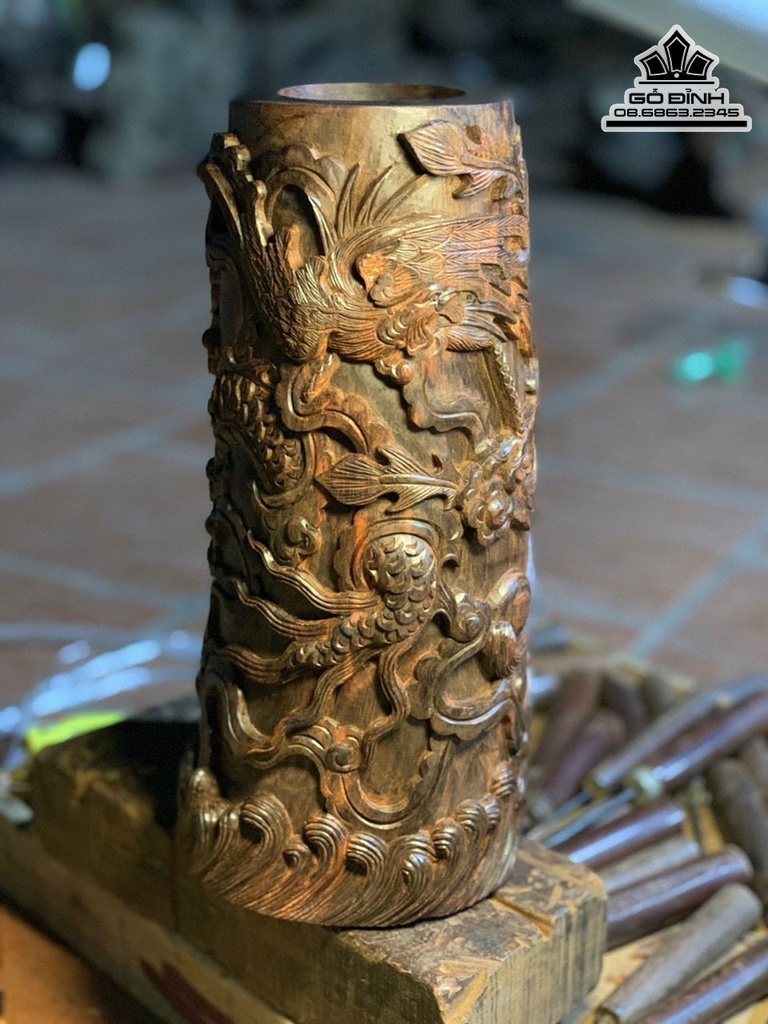 Ống Bút Tứ Linh Gỗ Trắc Cao 30 Ngang 16.5 Sâu 14 (cm)
