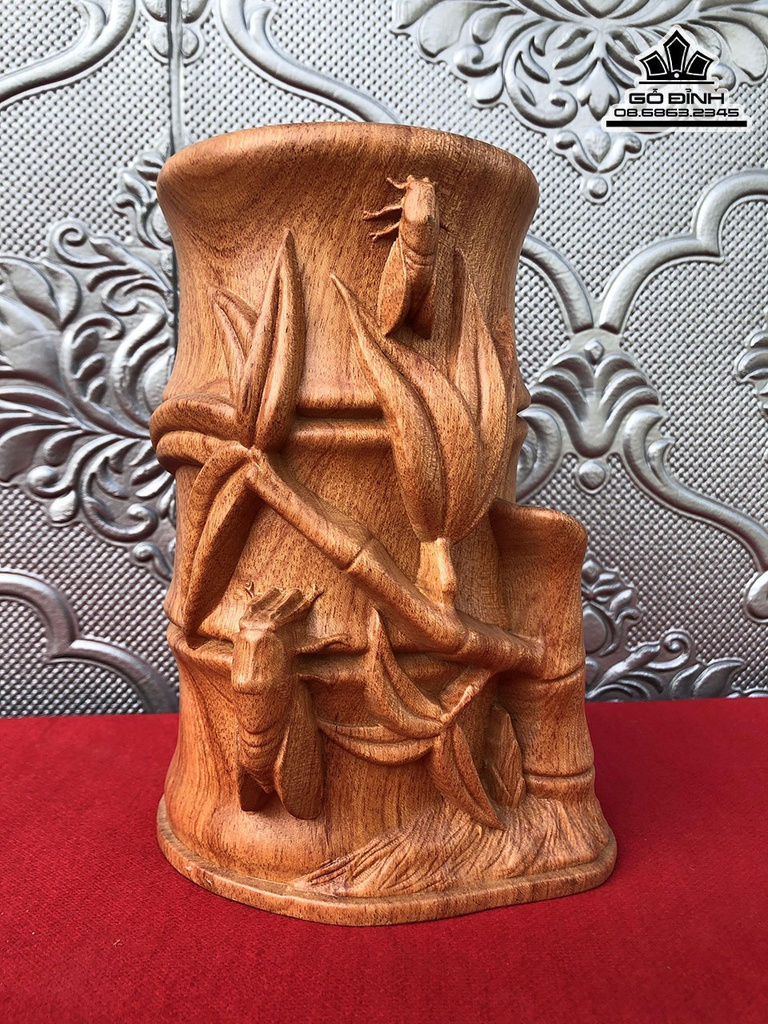 Ống Bút Ve Sầu Gỗ Hương Cao 18 Đường Kính 13 (cm)