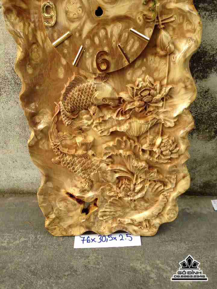 Đồng hồ chữ lộc gỗ nu nghiến cao 76 rộng 30,5 dày 2,5 (cm)