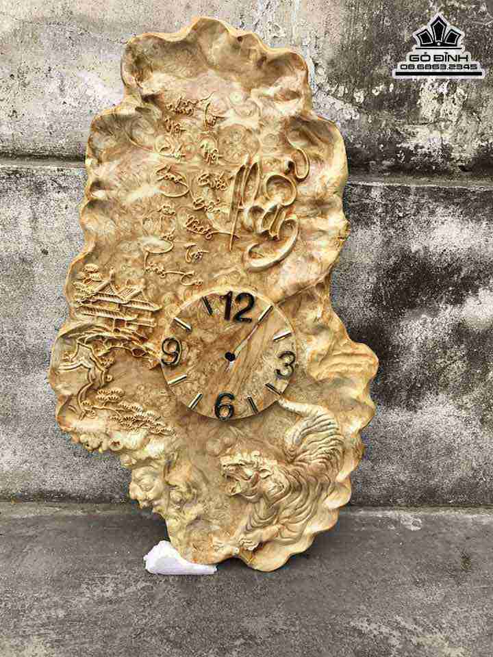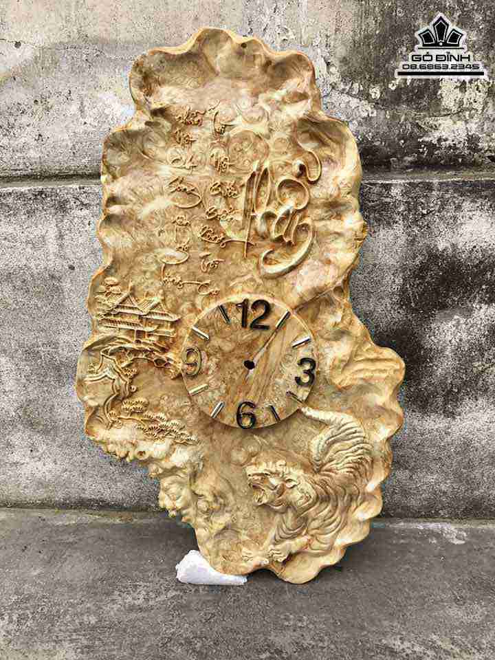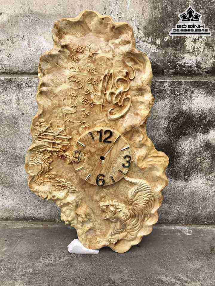 Đồng Hồ Chữ Nhẫn Gỗ Nu Nghiến Cao 62 Rộng 38 Dày 2.2 (cm)