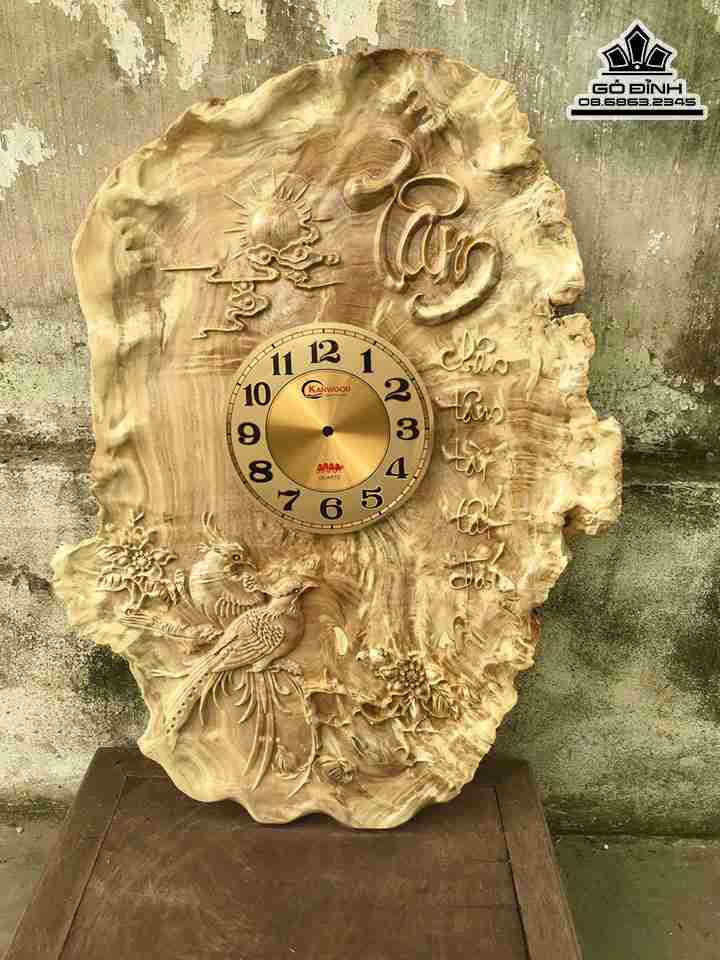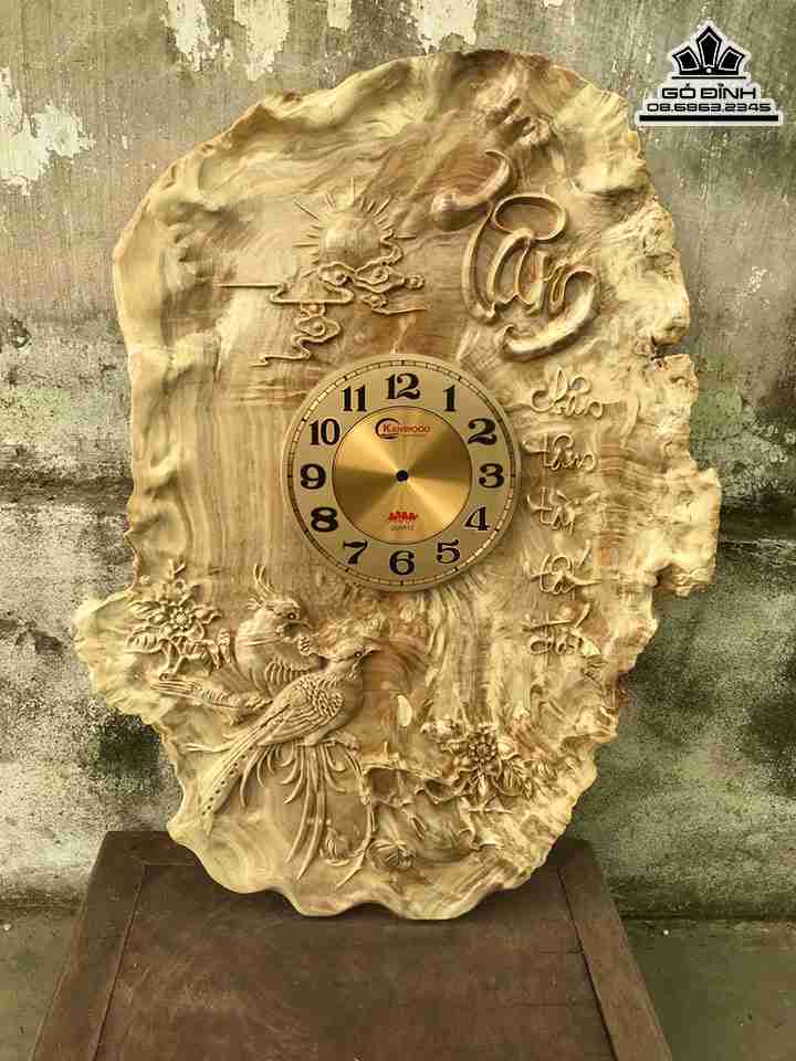 Đồng Hồ Chữ Tâm Gỗ Nu Nghiến Cao 73 Ngang 49.5 Dày 2.2 (cm)