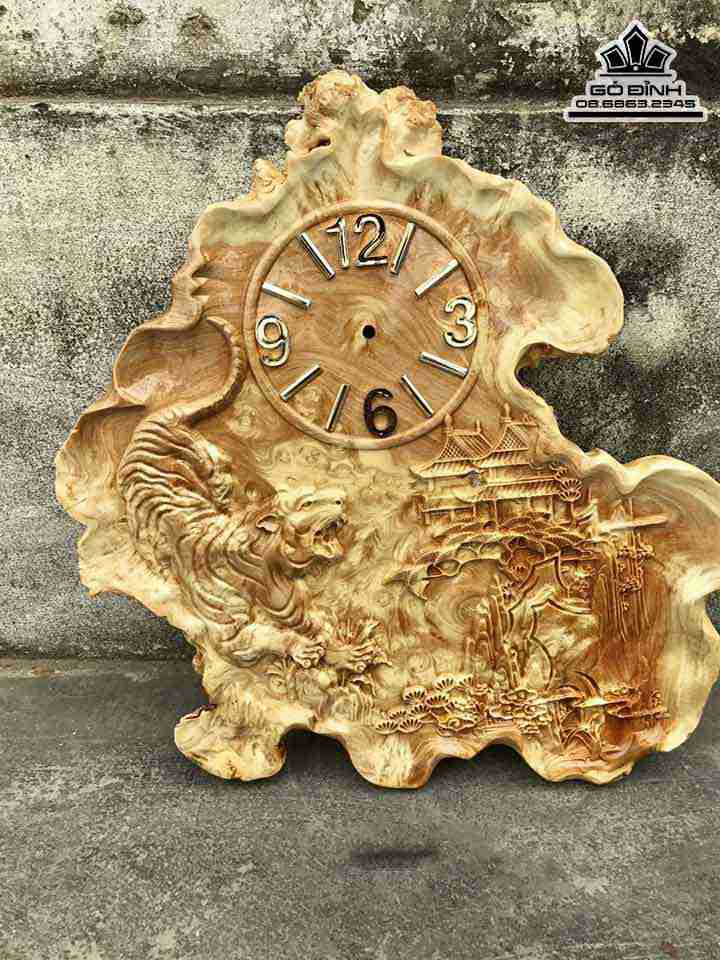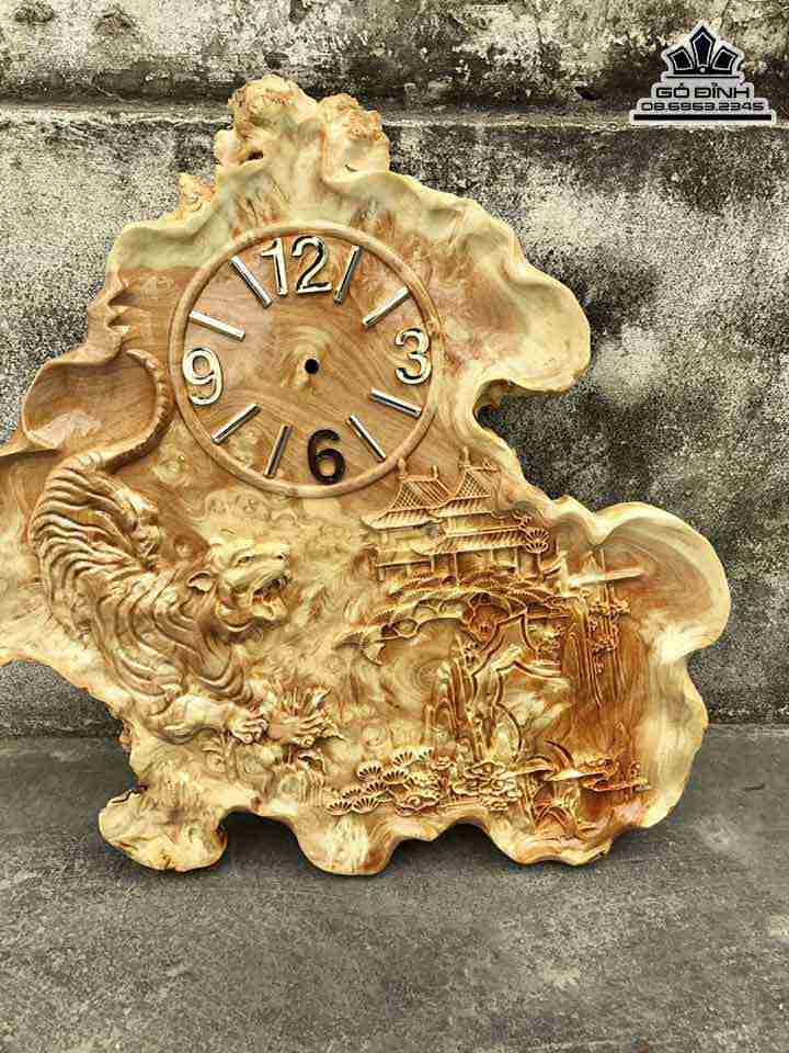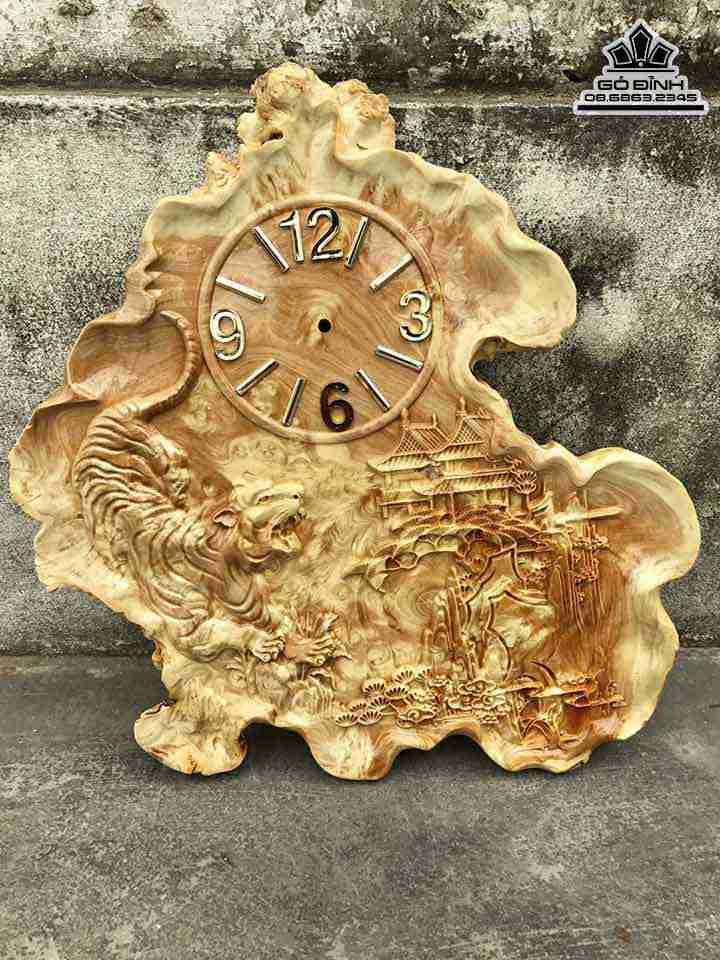 Đồng Hồ Hổ Săn Mồi Gỗ Nu Nghiến Cao 50 Rộng 41 Dày 2.2 (cm)