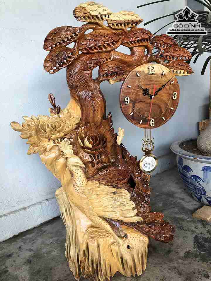 Đồng Hồ Phu Thê Gỗ Hương Cao 78 Ngang 58 Sâu 30 (cm)