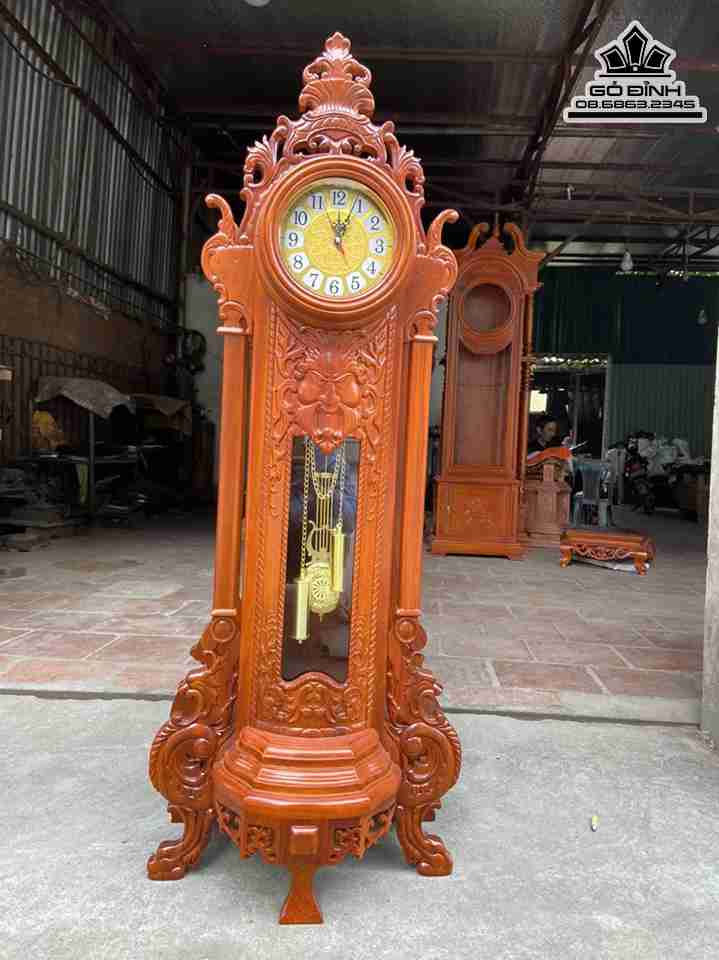 Đồng Hồ Quả Lắc Gỗ Gõ Đỏ ( Cate ) Cao 120 Rộng 45 Sâu 25 (cm)