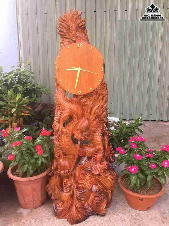 Đồng hồ rồng cá gỗ hương 96x38x25