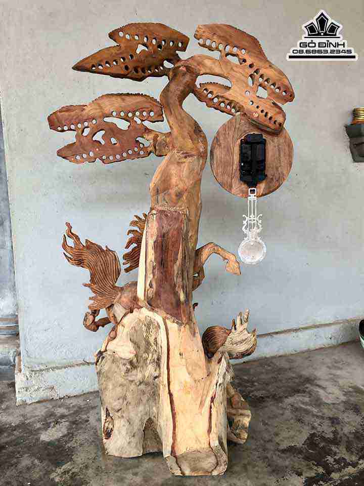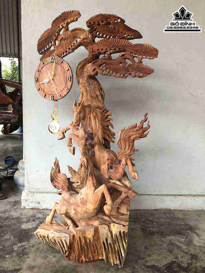 Đồng Hồ Song Mã Gỗ Hương Cao 107 Rộng 60 Dày 29 (cm)