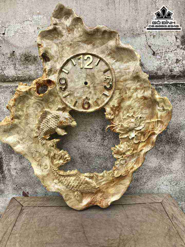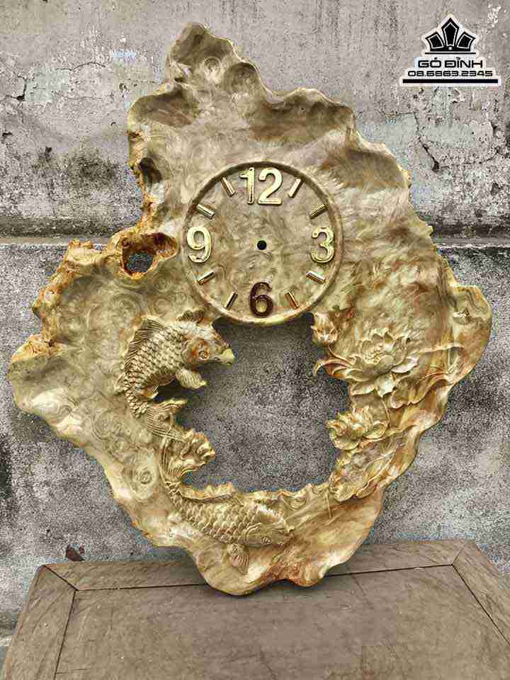 Đồng Hồ Song Ngư Gỗ Nu Nghiến Cao 55 Rộng 46 Dày 2.5 (cm)