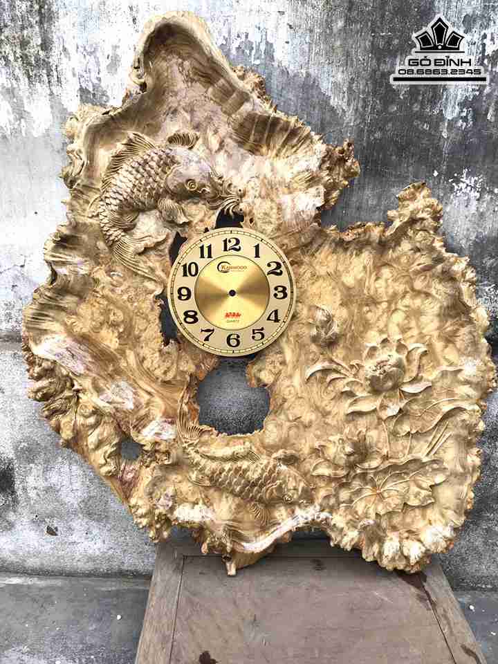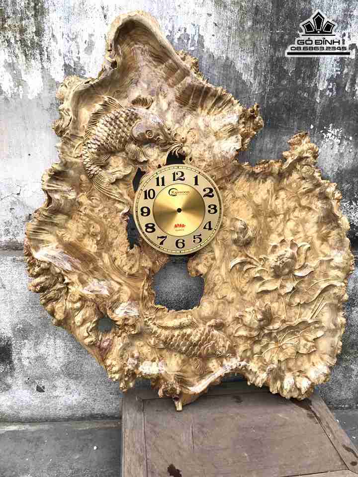 Đồng Hồ Song Ngư Gỗ Nu Nghiến Cao 88 Rộng 75 Dày 3 (cm)