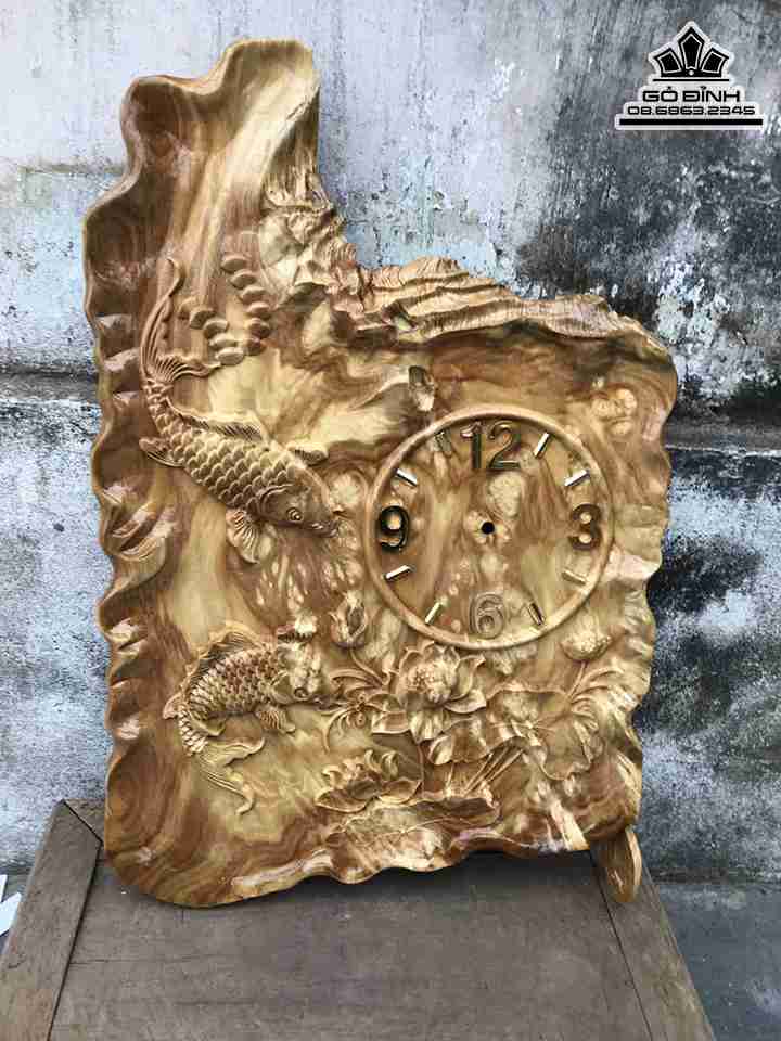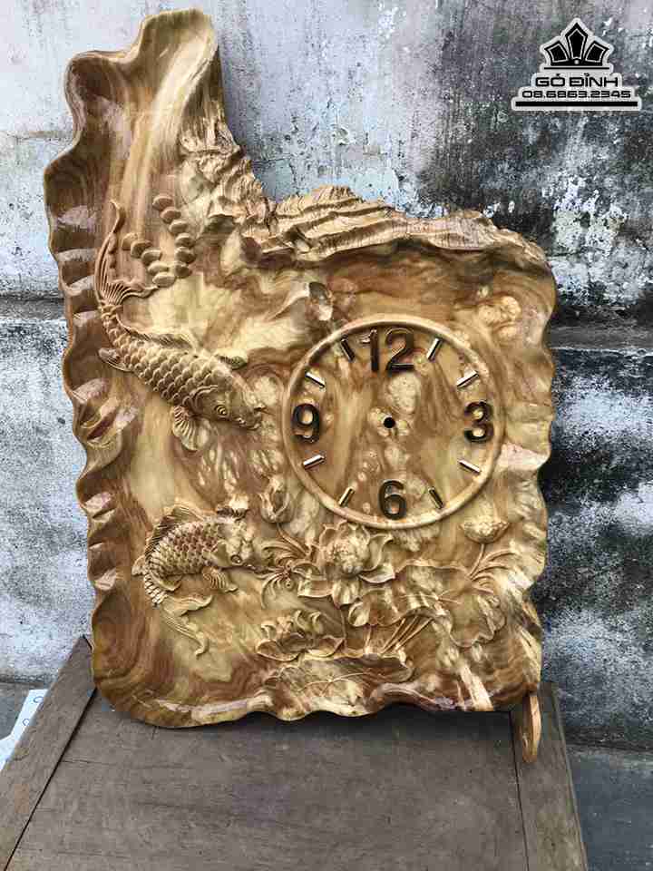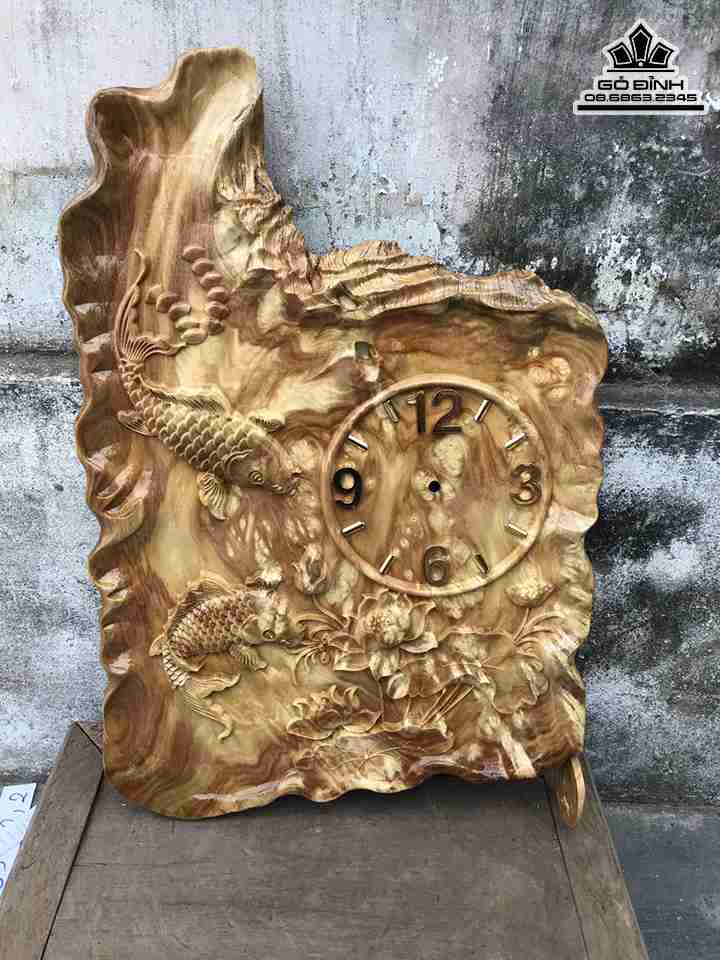 Đồng Hồ Song Ngư Gỗ Nu Nghiến Cao 59 Rộng 40 Dày 2.2 (cm)