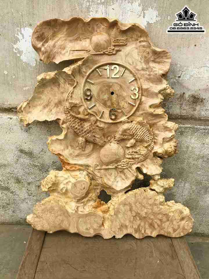 Đồng Hồ Song Ngư Gỗ Nu Nghiến Cao 64 Rộng 52 Dày 2.5 (cm)