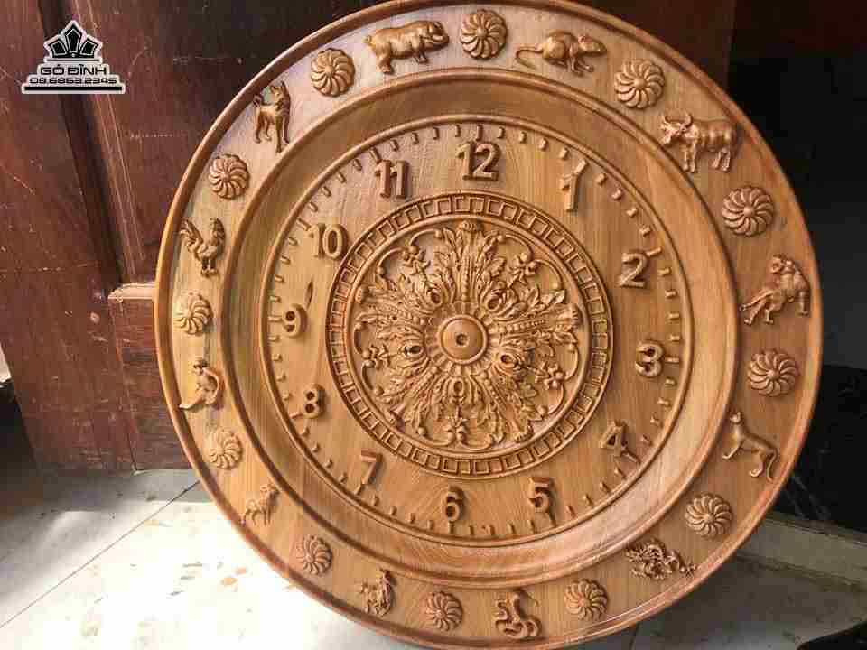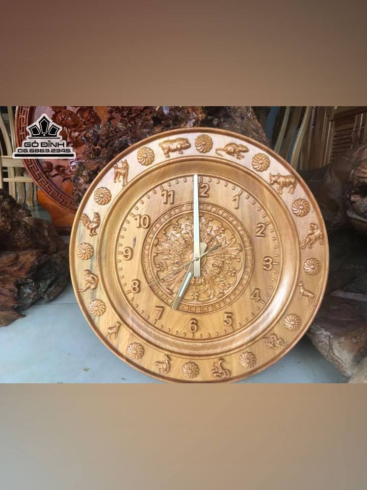 Đồng hồ tròn 12 con giáp gỗ pơ mu đường kính 40 dày 4 (cm)
