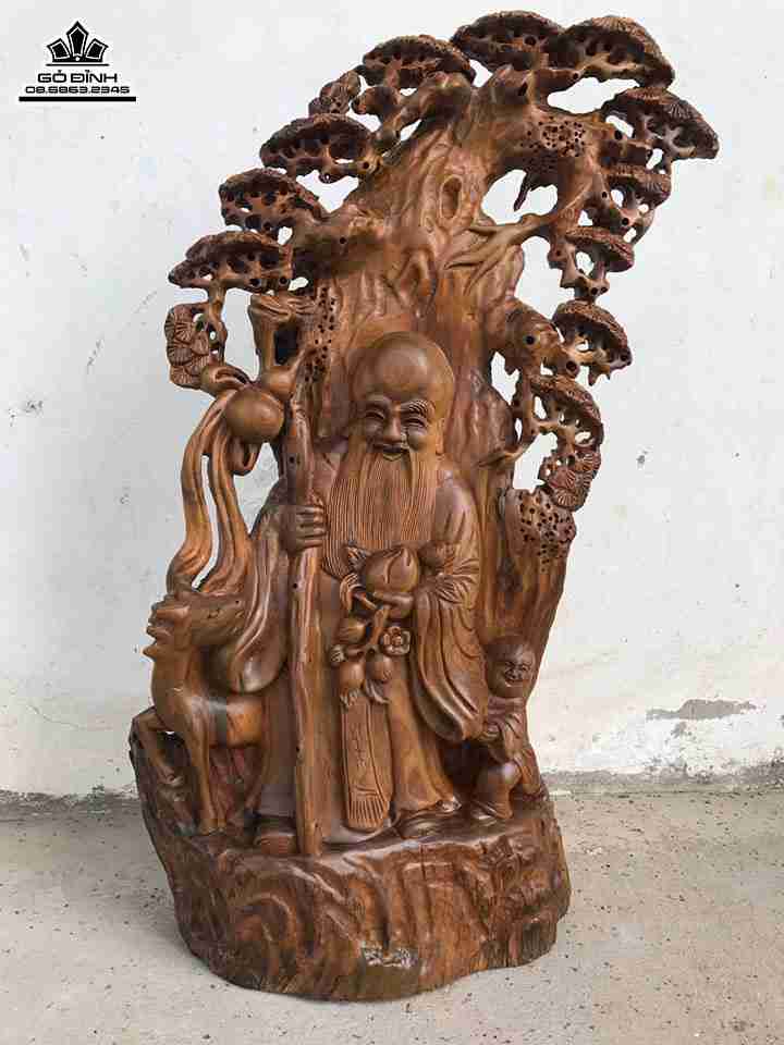 Ông thọ đứng tùng gỗ bách xanh cao 56 rộng 30 dày 15 (cm)