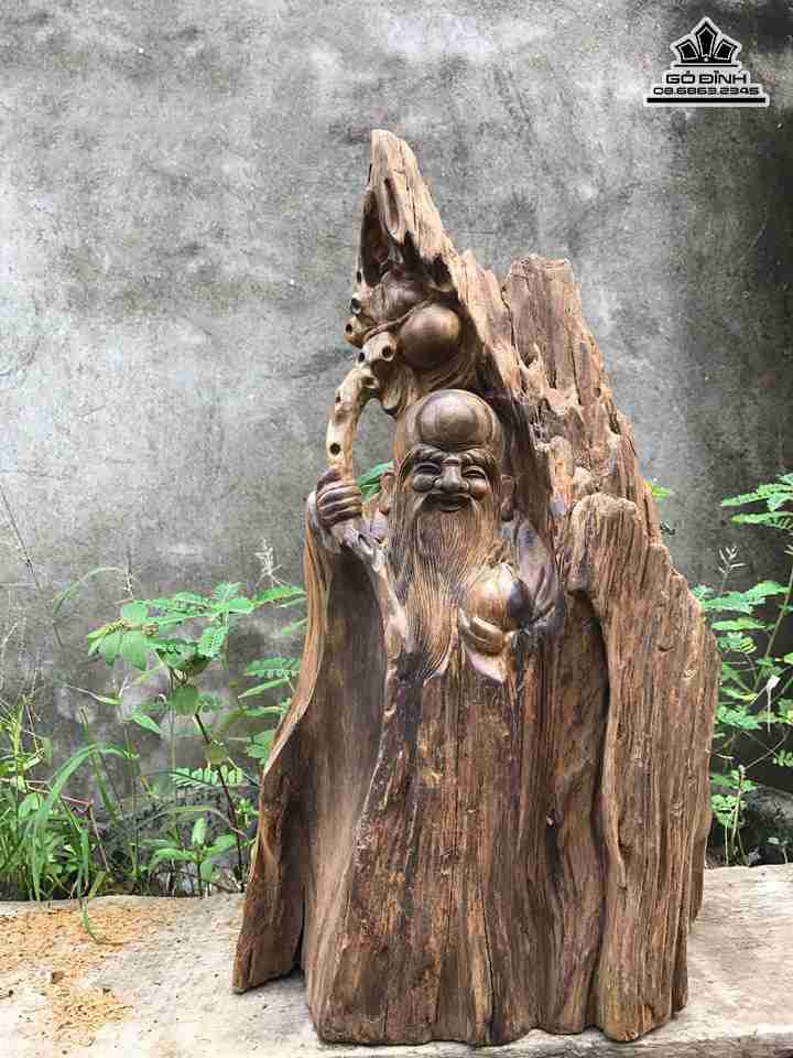 Ông thọ gỗ lũa bách xanh cao 43 rộng 26 dày 16 (cm)