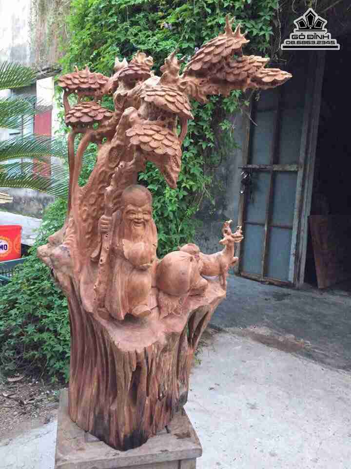 Ông thọ đứng gốc tùng gỗ hương cao 93 dày 50 rộng 30 (cm)