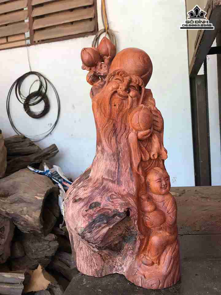 Ông thọ vác cành đào gỗ hương cao 50 rộng 26 dày 20 (cm)