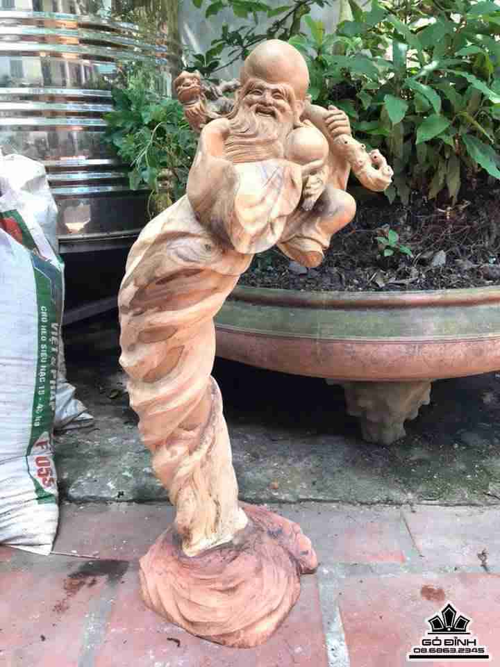 Ông thọ vác gậy như ý gỗ lũa bách xanh 75x34x28