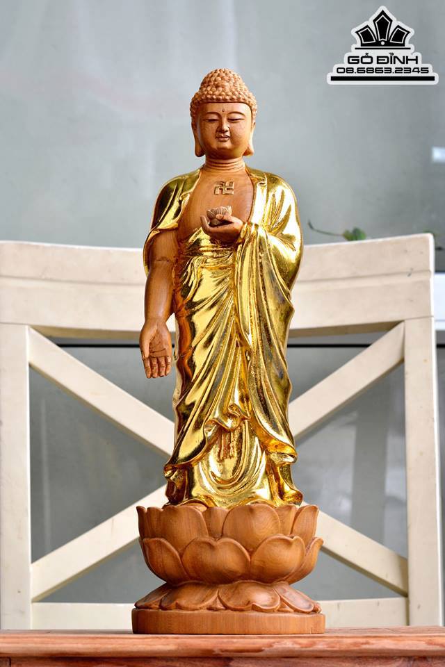 Phật a di đà gỗ bách xanh mạ vàng 40x12.6x11