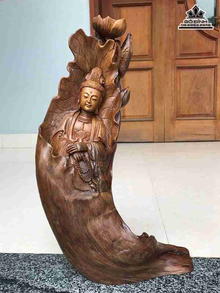 Phật bà gỗ lũa bách xanh cao 46 rộng 25 dày 14 (cm)