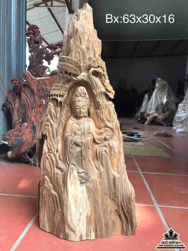 Phật bà ngồi tùng gỗ bách xanh 63x30x16
