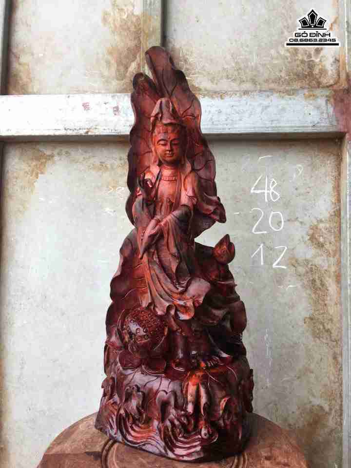 Phật bà quan âm gỗ trắc đỏ đen cao 48 rộng 20 dày 12 (cm)