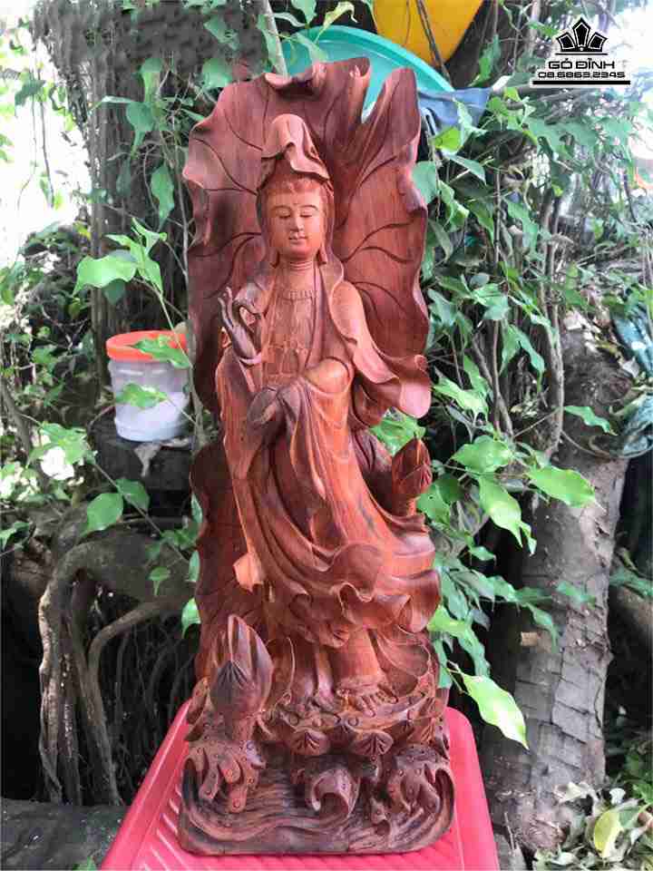 Phật bà tựa đài sen gỗ trắc đỏ đen cao 42 rộng 16 dày 10 (cm)