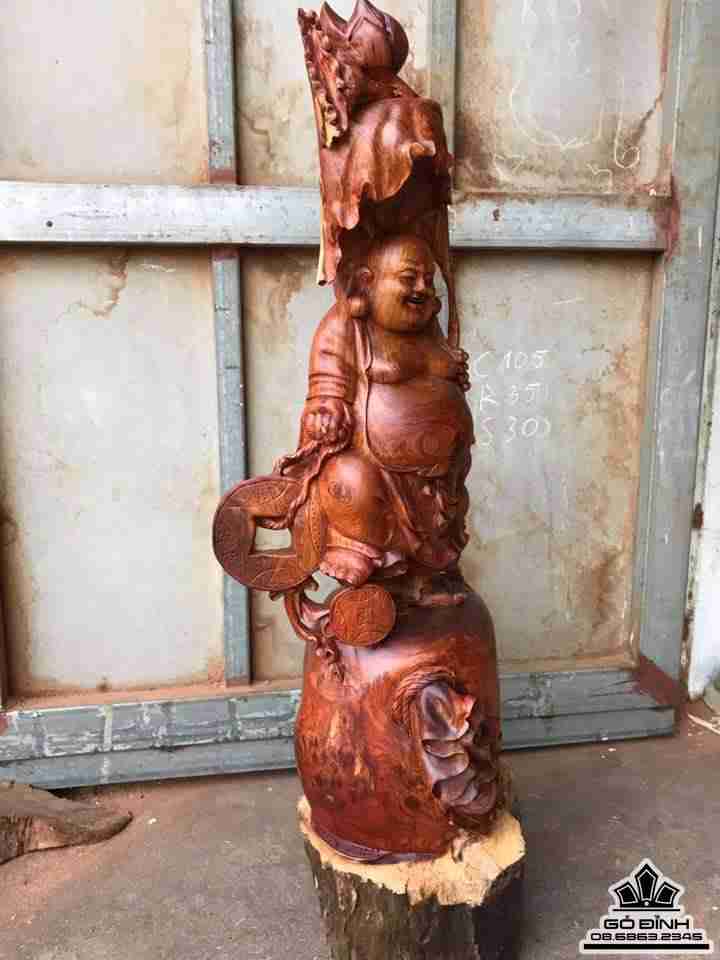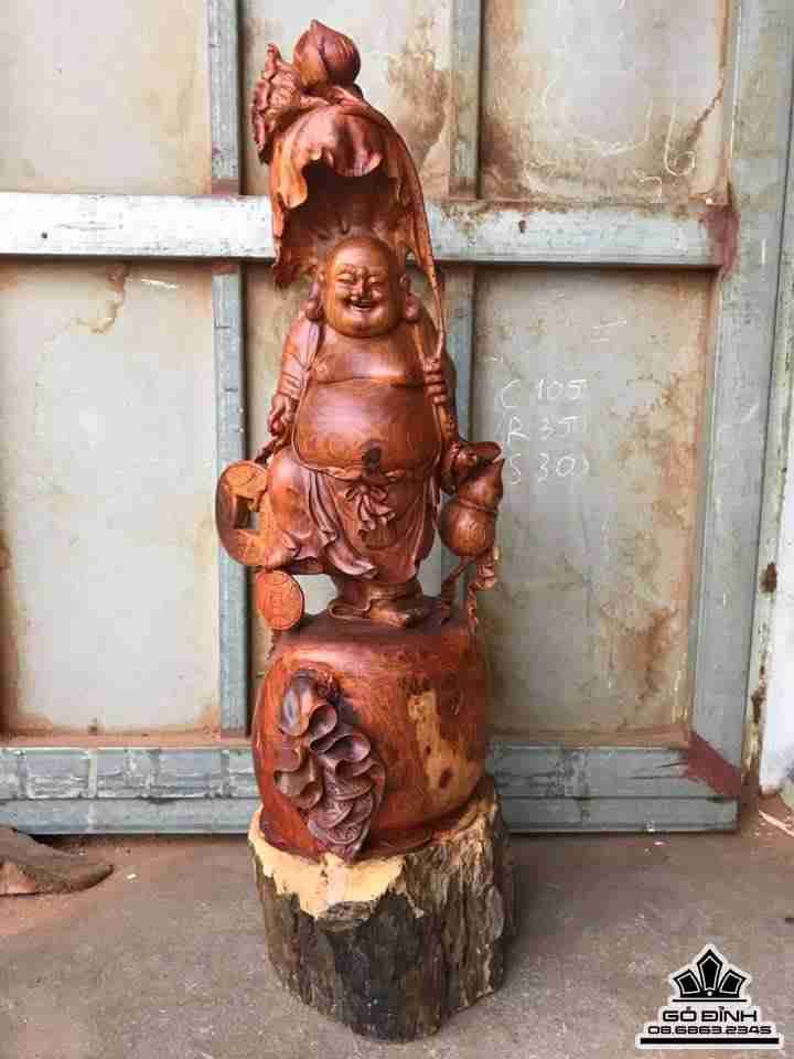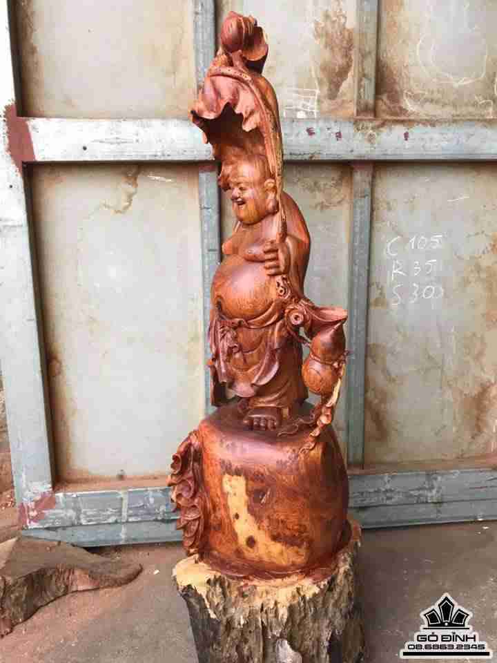 Phật di lặc cầm lá sen gỗ hương 1m05x35x30