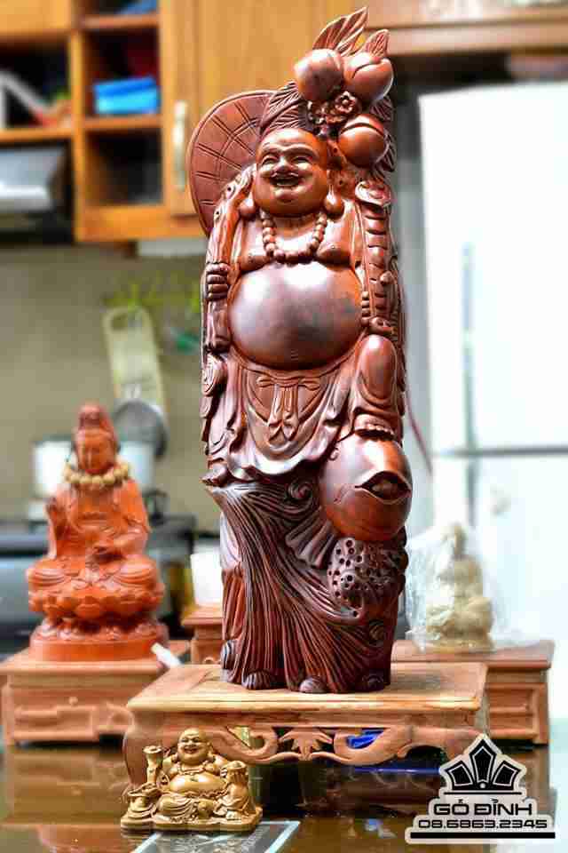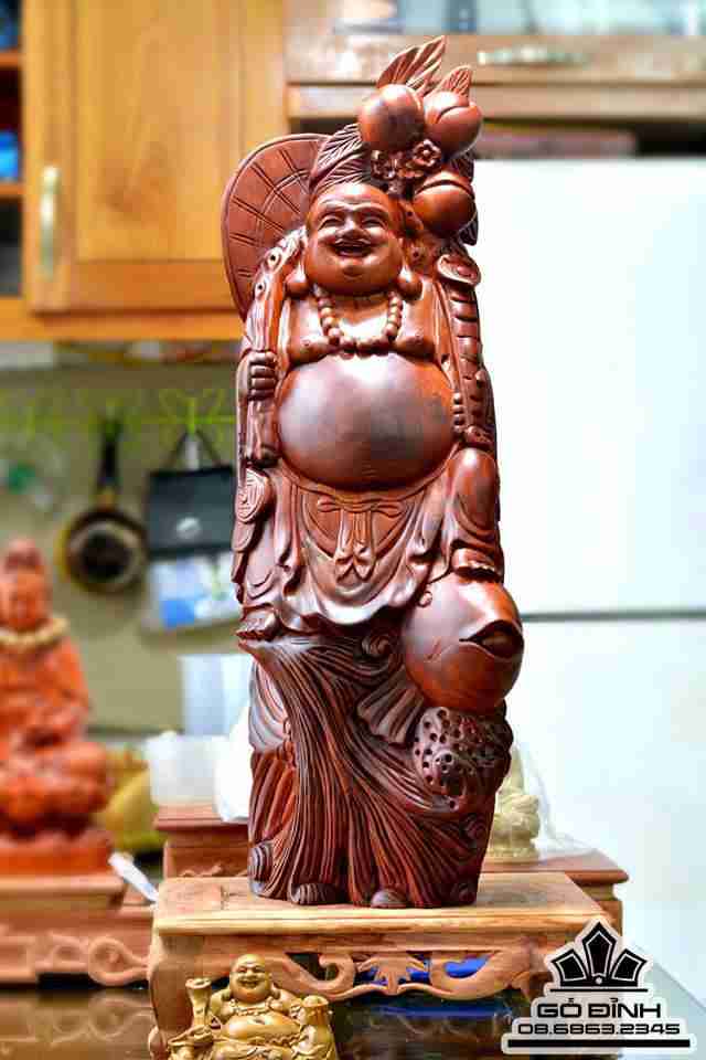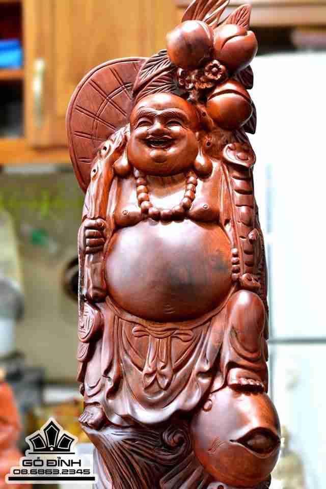Phật di lặc cưỡi cá chép gỗ hương 70x21x21