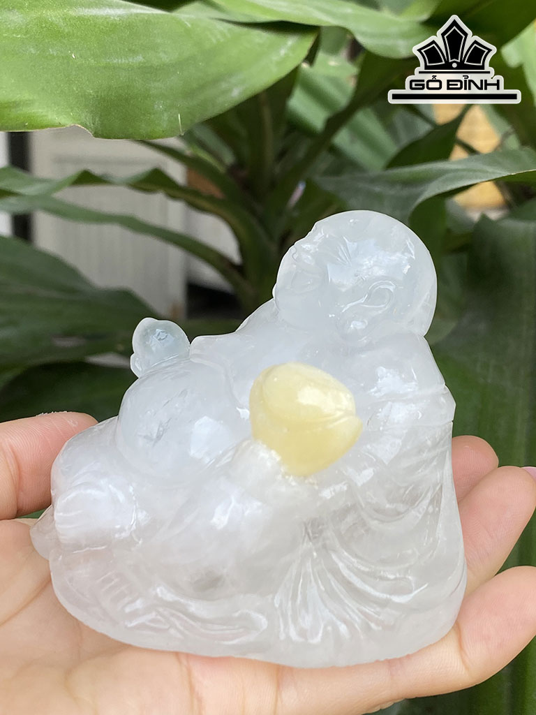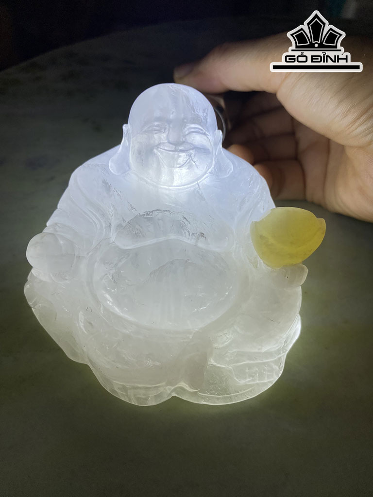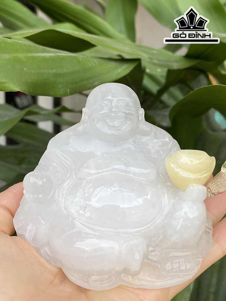 Phật Di Lặc Đá Thạch Anh Trắng Cao 92 Ngang 80 Sâu 66 (mm) 460g