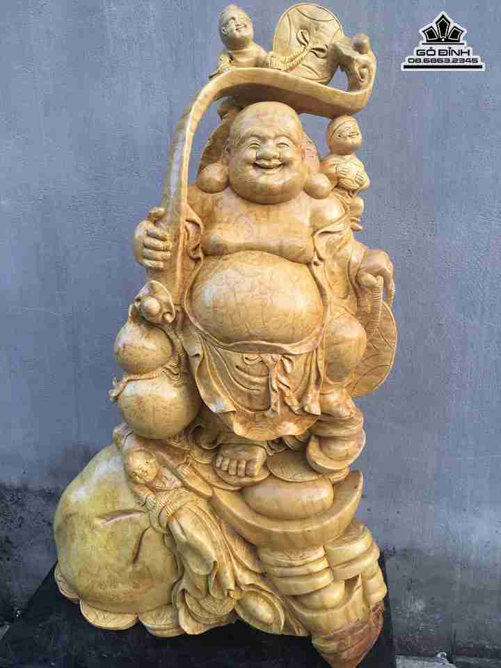Phật di lặc đứng bao tiền gỗ nu kháo cao 105 rộng 63 dày 28 (cm)