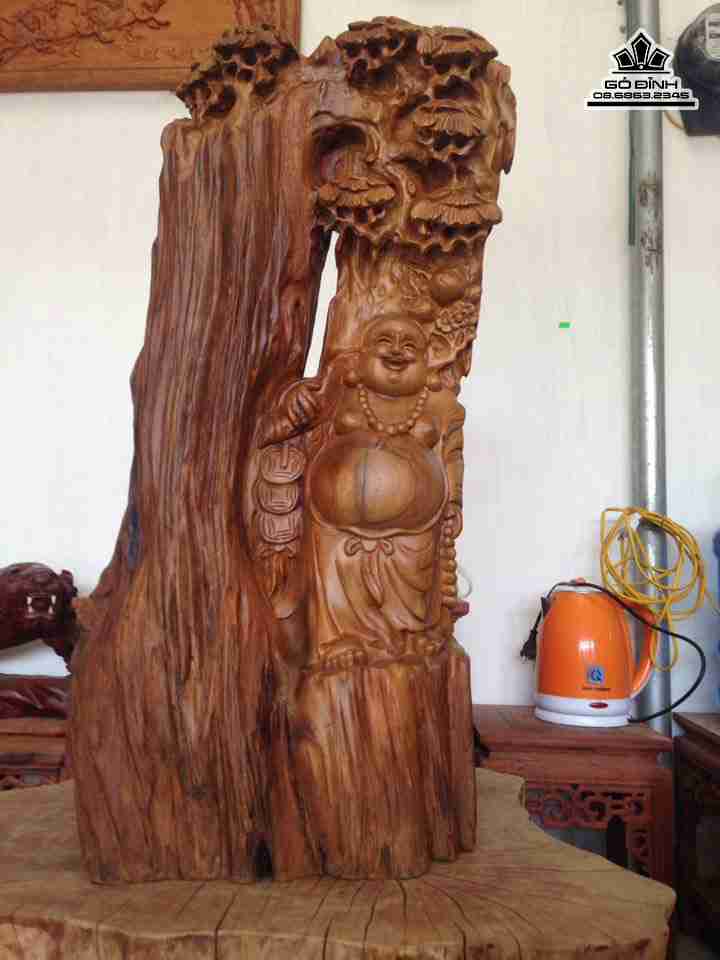 Phật di lặc đứng gốc tùng gỗ bách xanh thơm cao 72 rộng 38 dày 20 (cm)