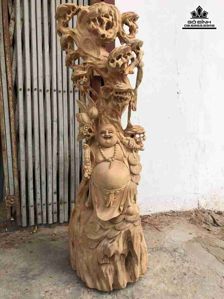 Phật di lặc đứng gốc tùng gỗ xá xị cao 80 rộng 25 dày 26 (cm)