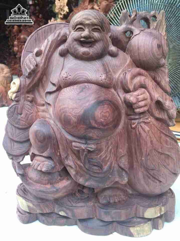 Phật di lặc gánh đào gỗ cẩm cao 35 rộng 30 dày 9 (cm)