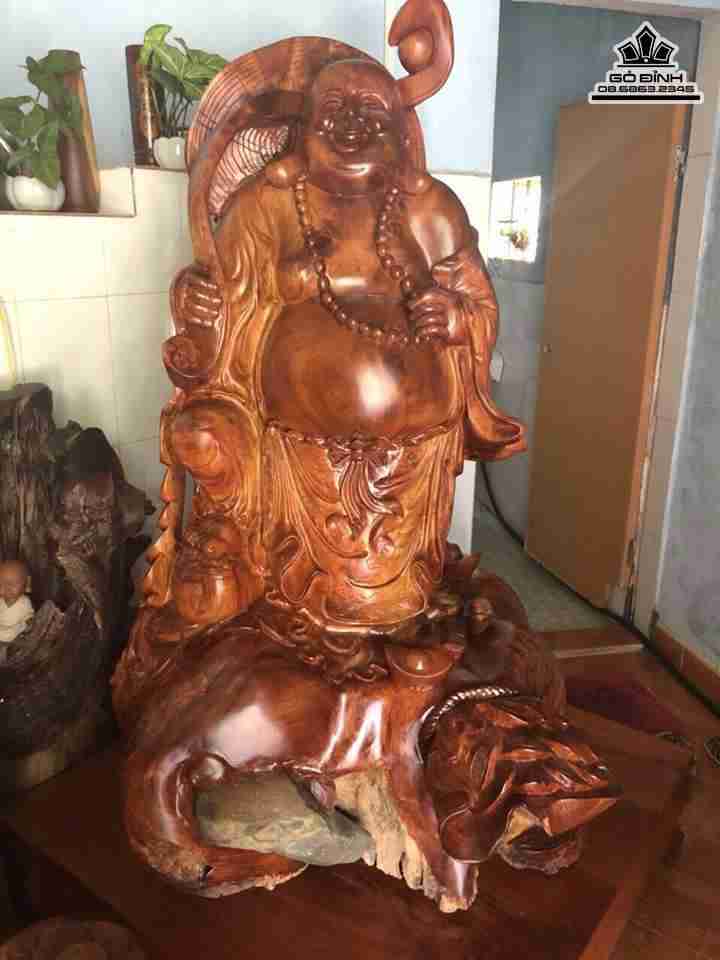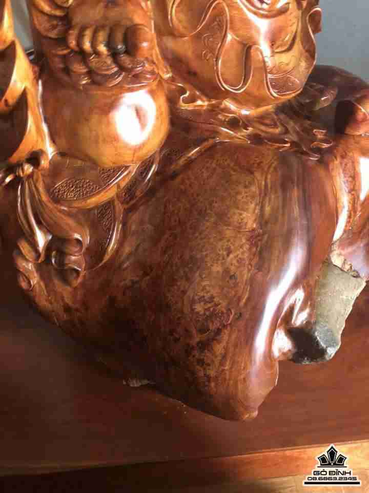 Phật di lặc gỗ nu hương ôm đá 1m55x100x100
