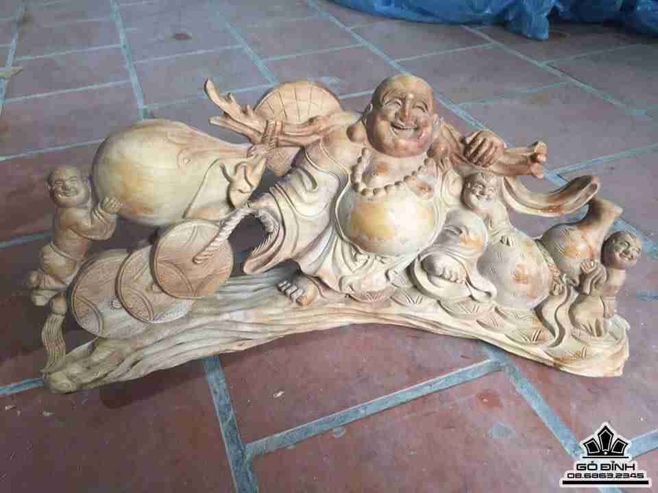 Phật di lặc kéo bao tiền gỗ ngọc am Hà Giang 30x60x13