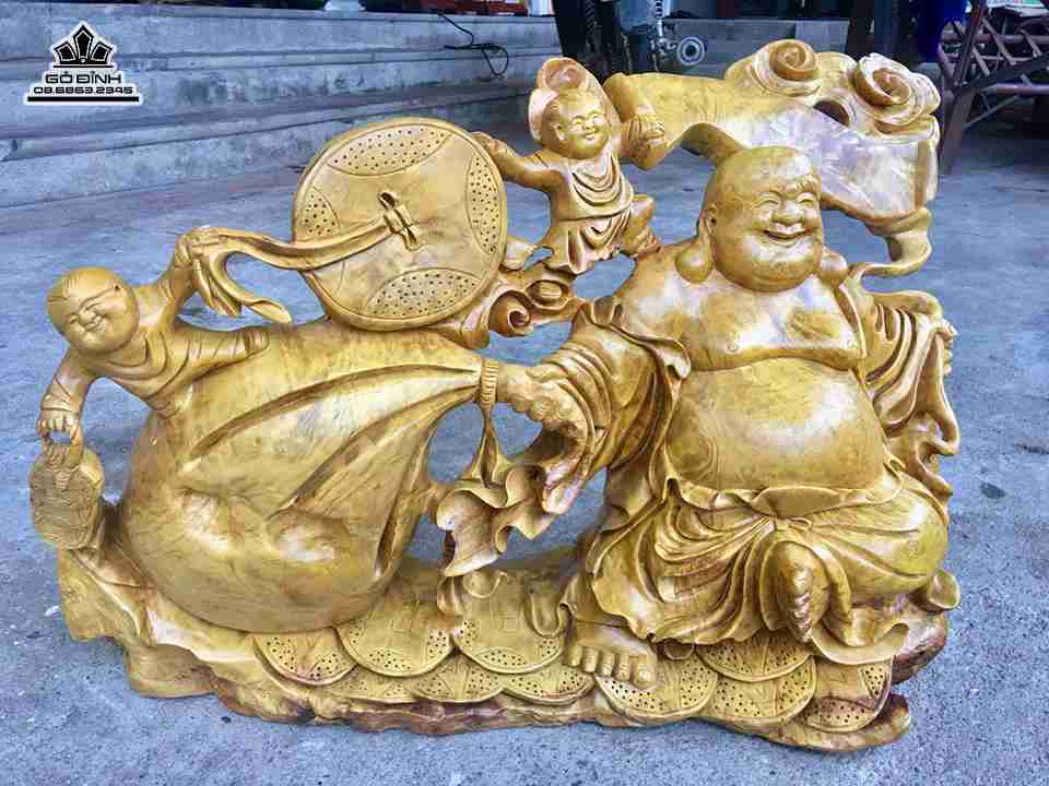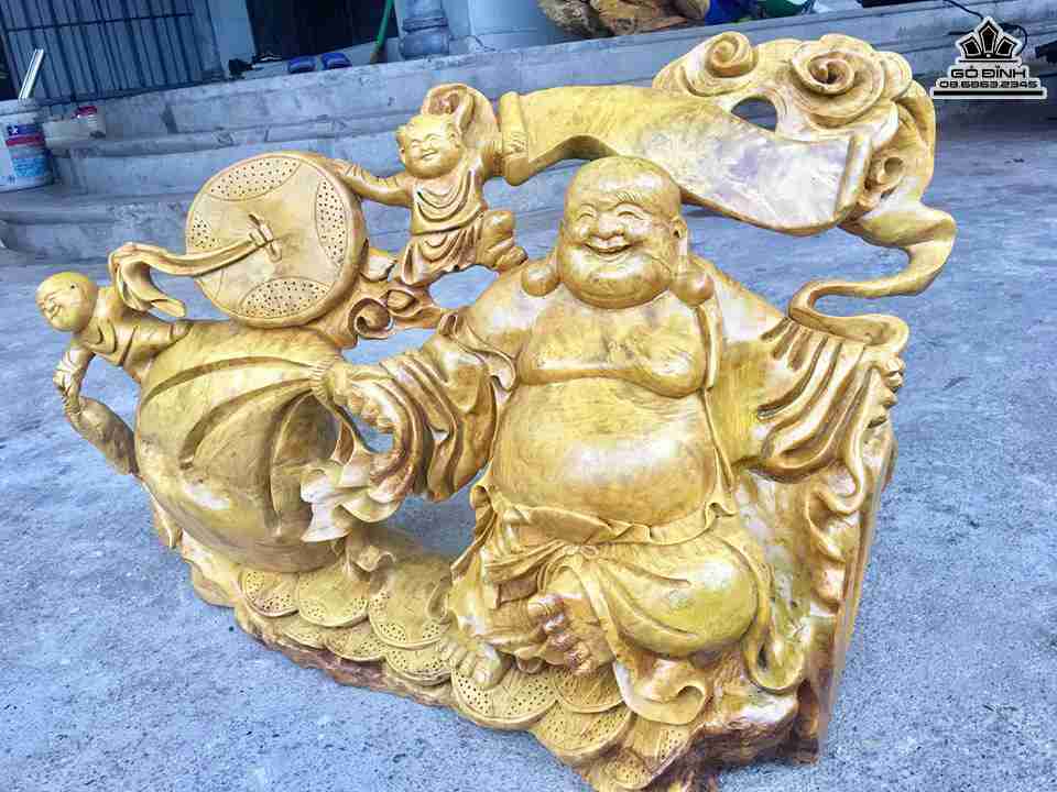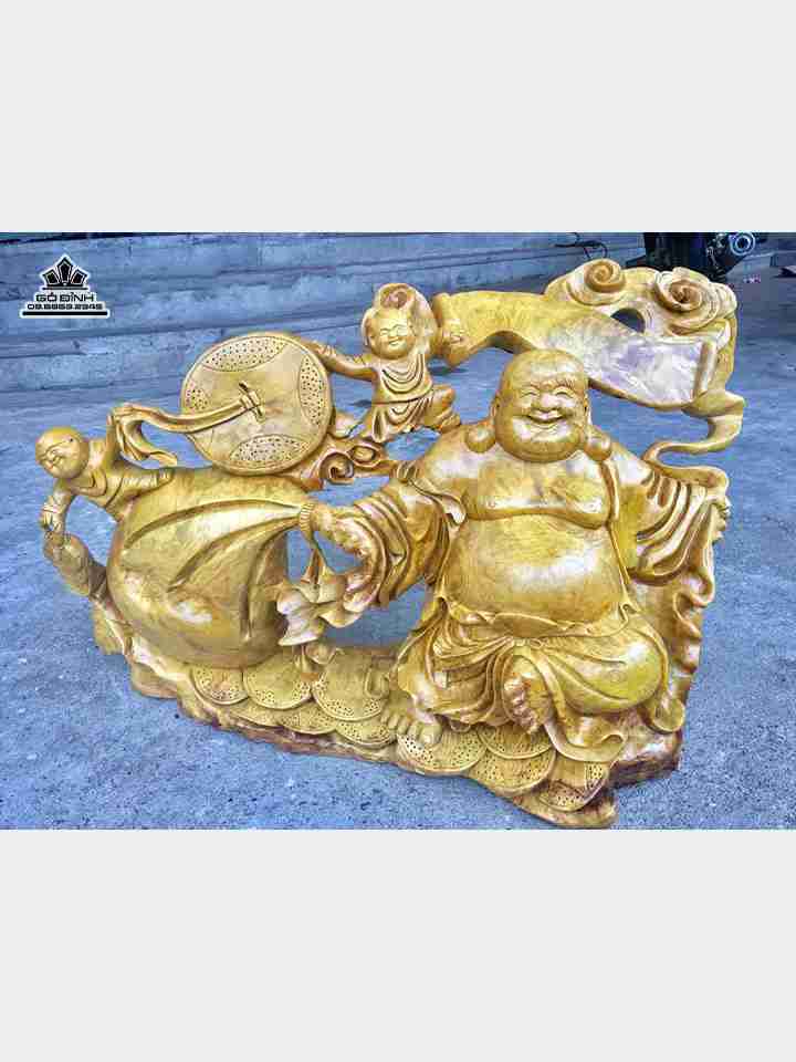 Phật di lặc kéo bao tiền gỗ nu kháo cao 42 rộng 61 dày 24 (cm)