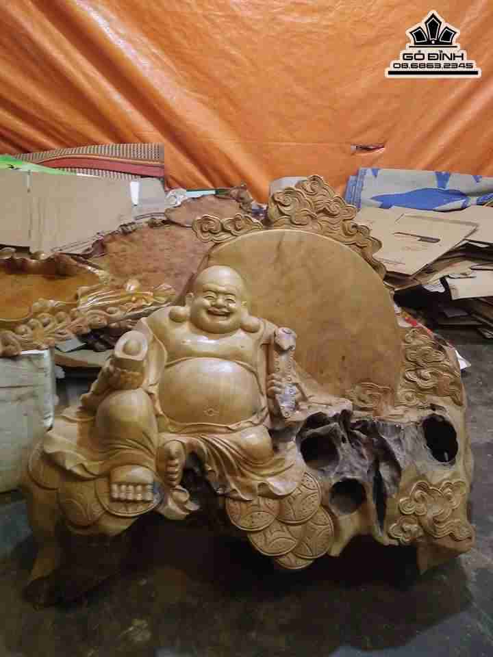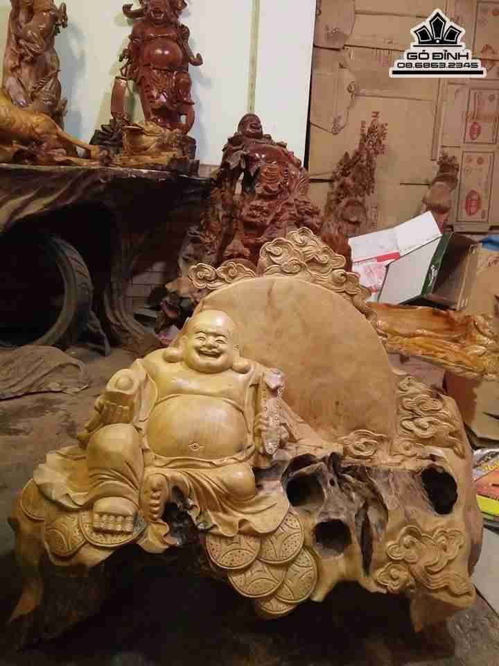 Phật di lặc ngồi cung trăng gỗ xá xị thơm 66x80x40