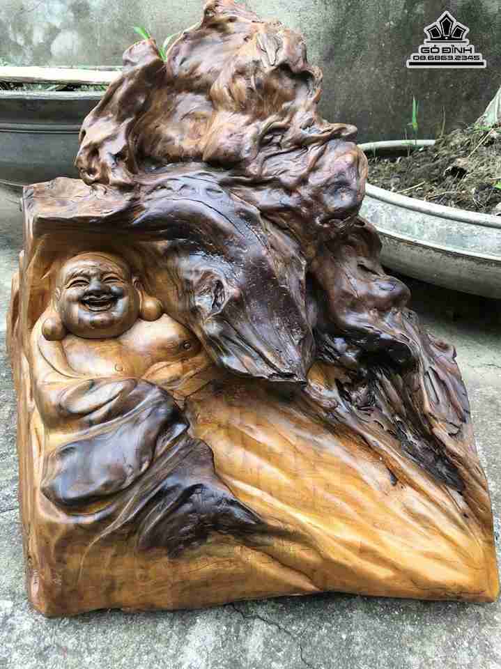Phật di lặc ngồi gỗ bách xanh cao 47 rộng 50 dày 32 (cm)