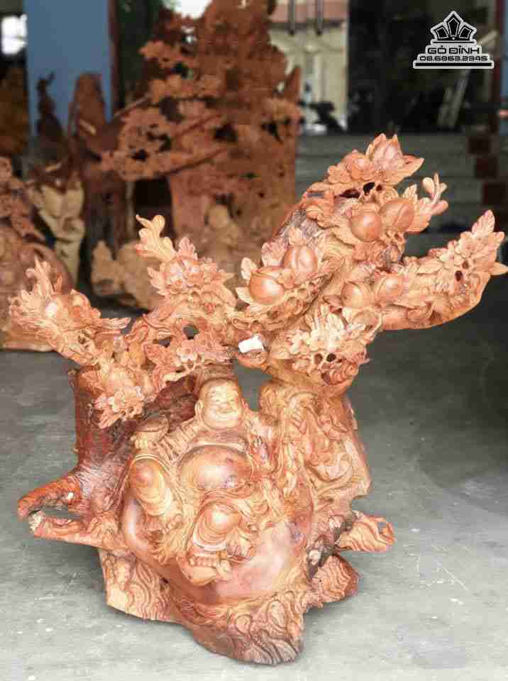 Phật di lặc ngồi gốc đào gỗ hương cao 93 rộng 90 dày 50 (cm)