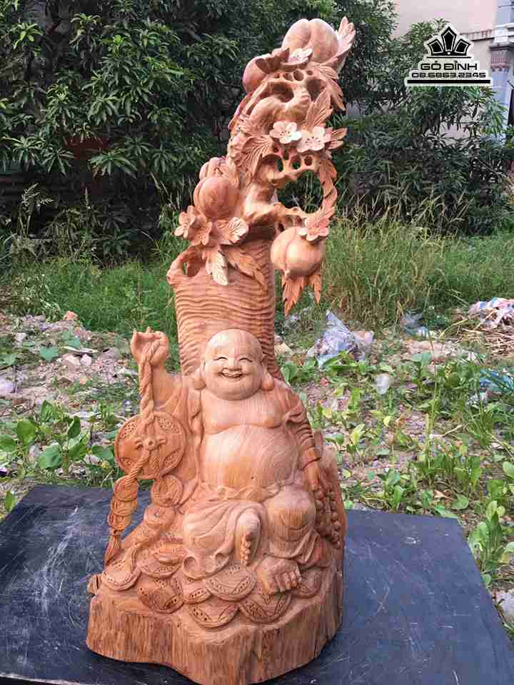 Phật di lặc ngồi gốc đào gỗ ngọc am cao 70 rộng 32 dày 30 (cm)