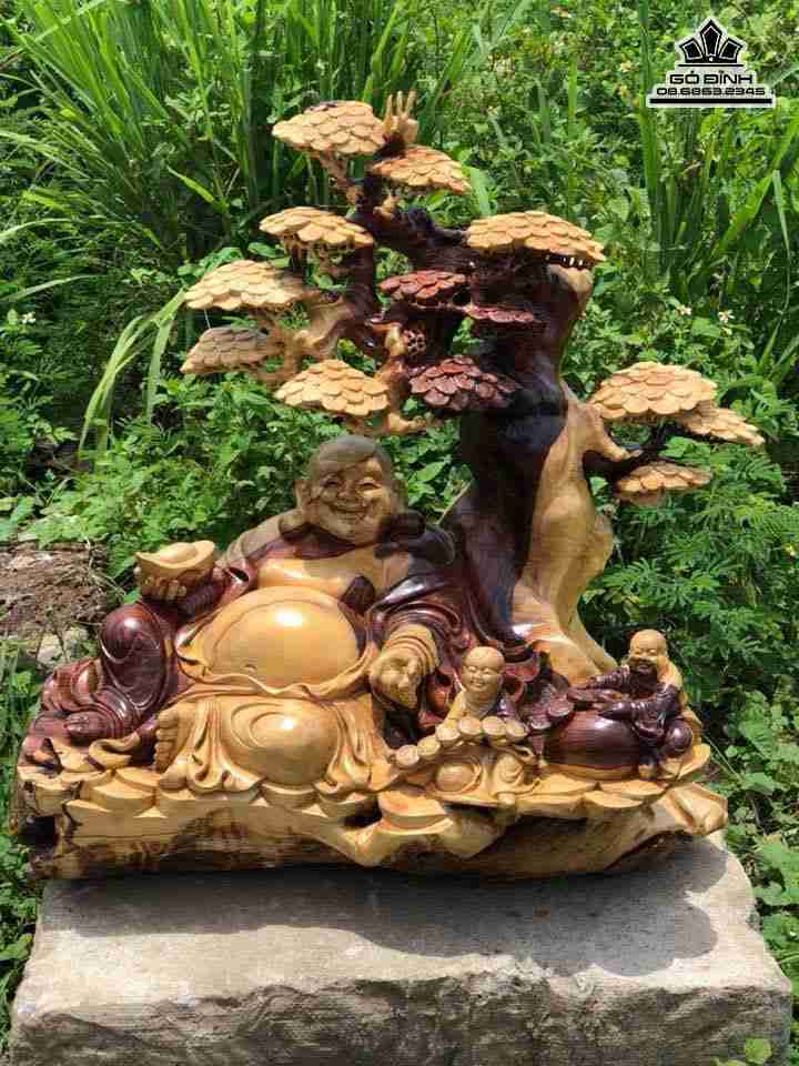 Phật di lặc ngồi gốc tùng gỗ cẩm chỉ cao 72 rộng 68 sâu 48 (cm)