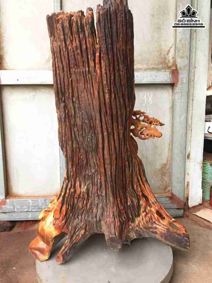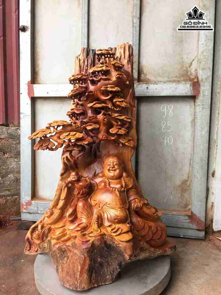 Phật di lặc ngồi gốc tùng gỗ hương cao 98 rộng 85 sâu 40 (cm)