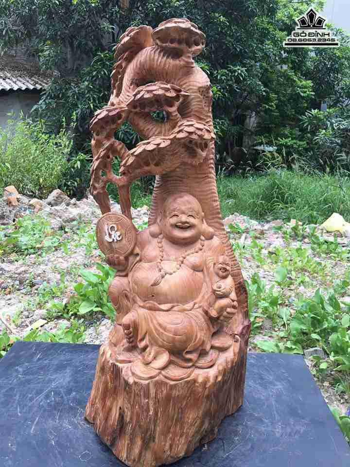 Phật di lặc ngồi gốc tùng gỗ ngọc am cao 68 rộng 30 dày 28 (cm)