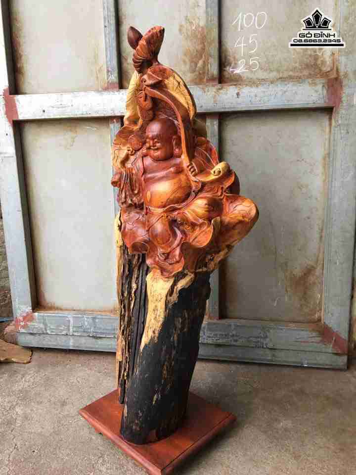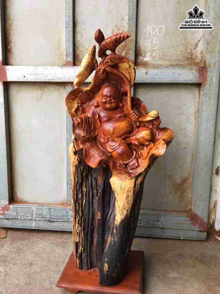 Phật di lặc ngồi lá sen gỗ hương cao 100 rộng 45 dày 25 ( cả kỉ) (cm)