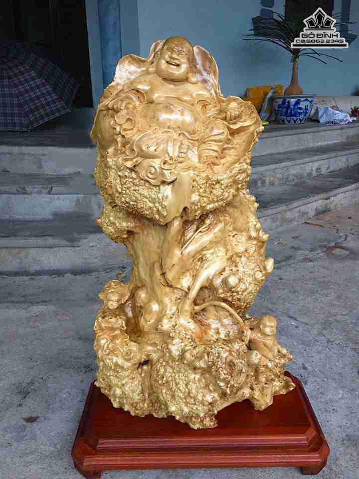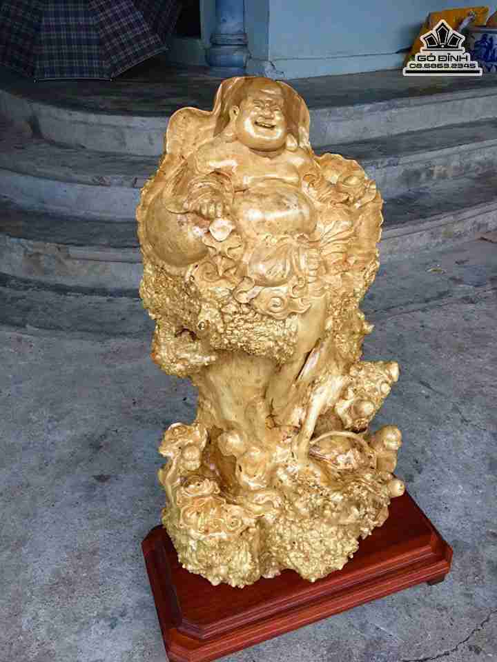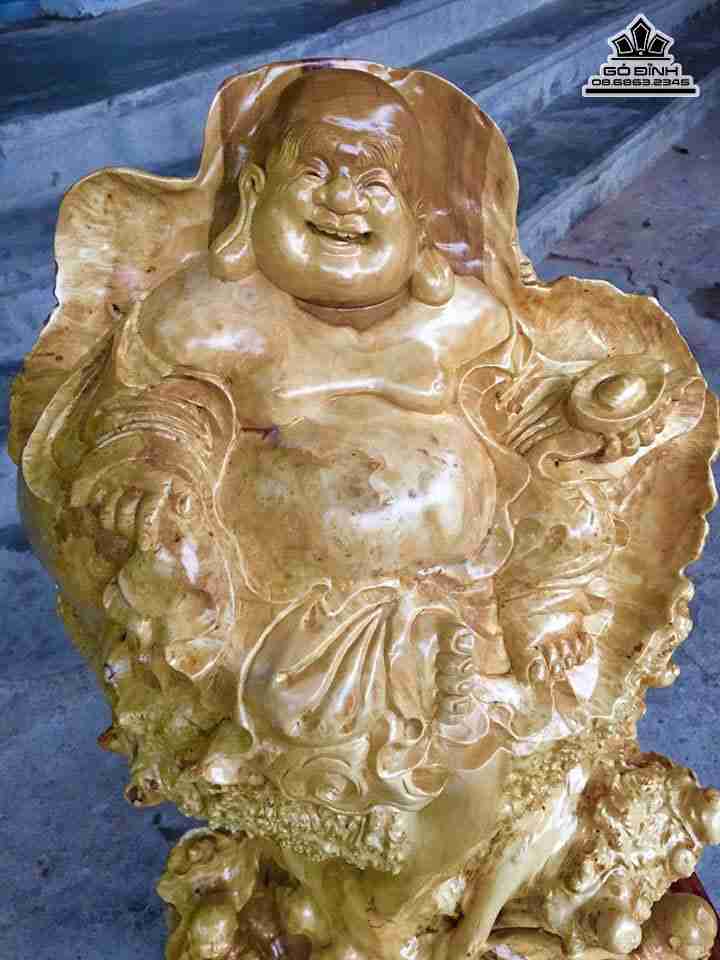 Di lặc ngồi lá sen gỗ nu hương giáng cao 80 rộng 45 sâu 26 (cm)
